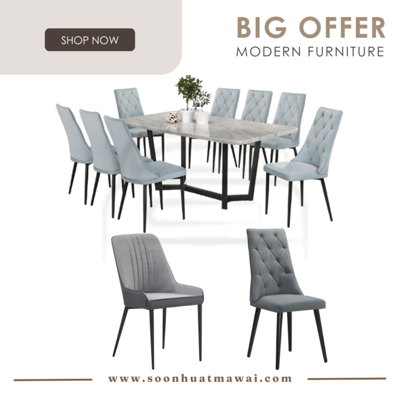 1500 T&L (62086-1)+ S81611 (FABRIC) DINING SET 1+8 T: 1500 T&L (62086-1) L1500 W1500 H750mm C: S81611 (FABRIC) W530 D560 H990mm COLOUR: GREY