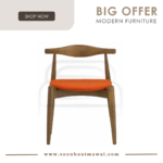 Bouvier dining chair in Walnut colour frame, Carrot colour Delaine fabric seat