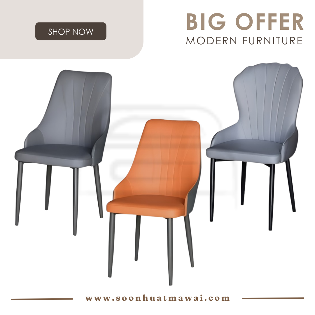 608 (GREY) DINING CHAIR L48 D59 H90 COLOUR: GREY 608 (ORANGE) DINING CHAIR L48 D59 H90 COLOUR: ORANGE 881 DINING CHAIR L50 D57 H94 COLOUR: GREY ***AT LEAST BUY 2 PCS FOR EVERY PURHASE