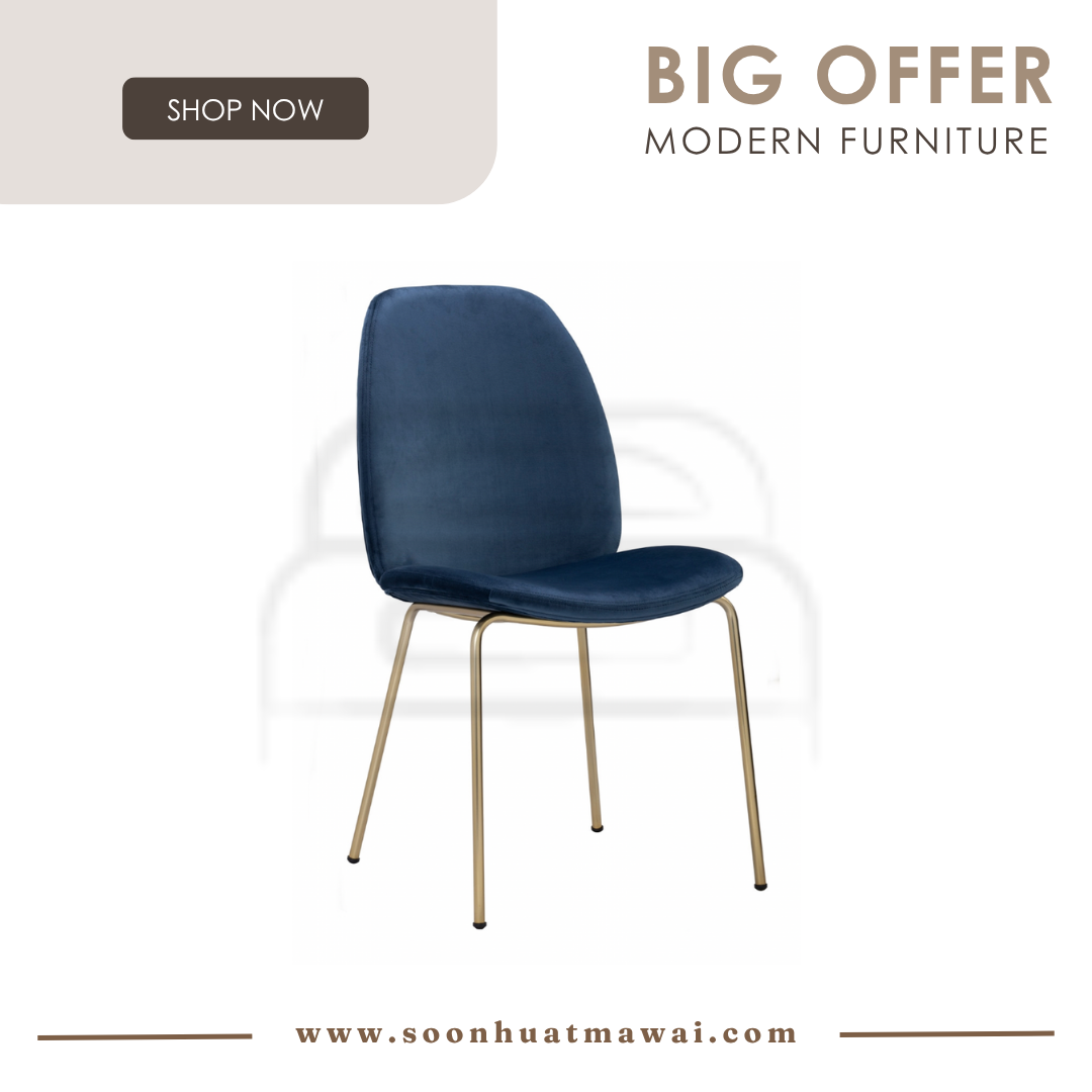 Adelia Dining Chair with Gold colour leg, Jungle Green colour Veloutine fabric