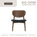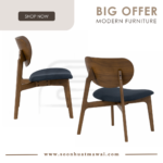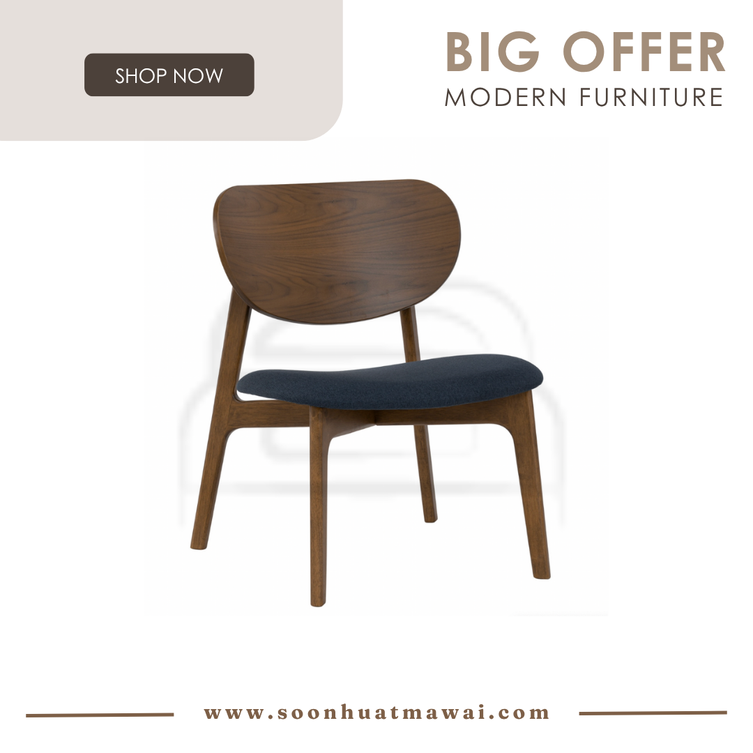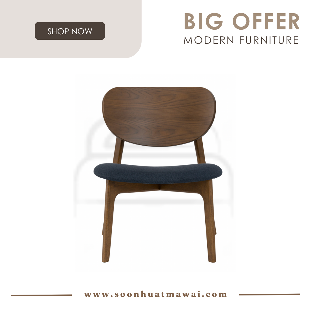 Aleta lounge chair in Cocoa colour frame, Walnut veneer chair back with Navy colour Challis fabric cushion