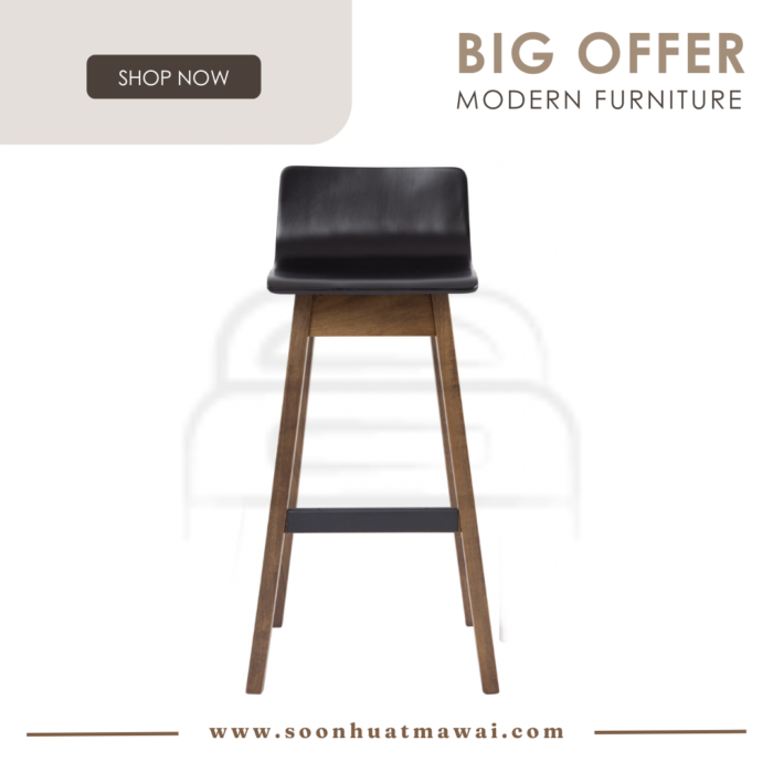 Ava Low Back Bar Chair in Ebony colour seat with Cocoa colour leg