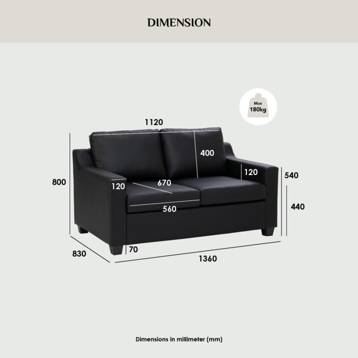 Baleno 2 seater sofa in Black colour leg, Espresso colour Premium Vinyl body