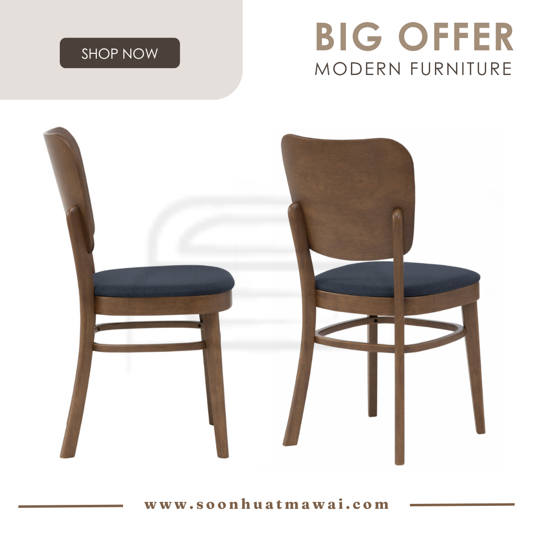 Beverly dining chair in Cocoa colour frame, Navy colour Challis fabric (With stretcher)