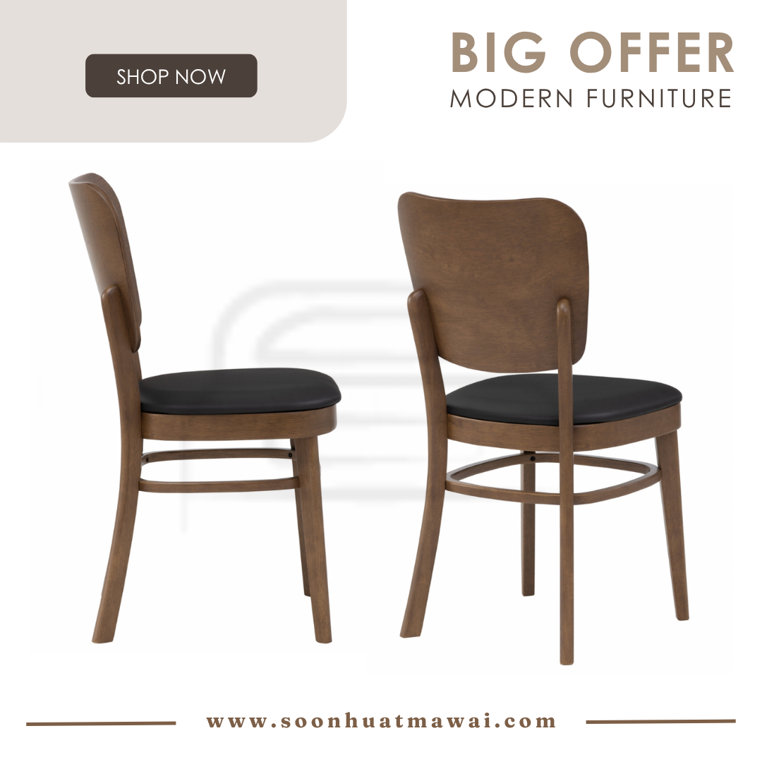 Beverly dining chair in Natural colour frame, Mocha colour Premium Vinyl (With stretcher)