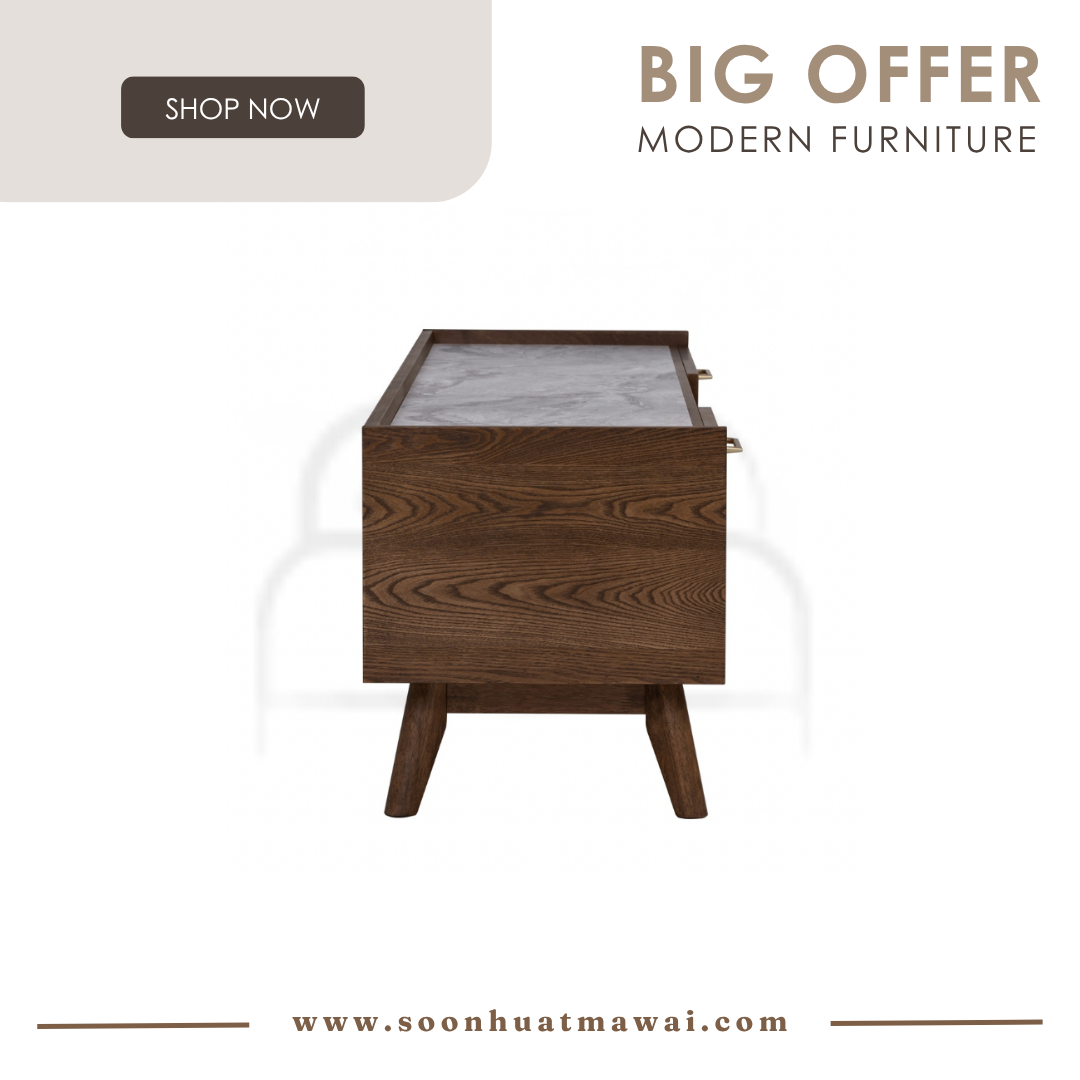 Breda 1.5M TV Cabinet in Cocoa colour leg, Cocoa colour body and White Marble colour Melamine top