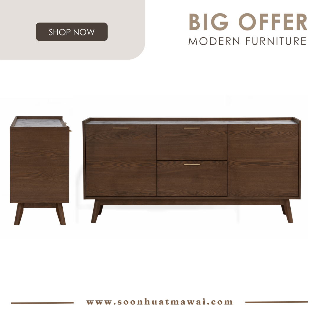 Breda 1.6m sideboard on Cocoa colour leg, Cocoa colour body and White Marble colour Melamine top