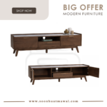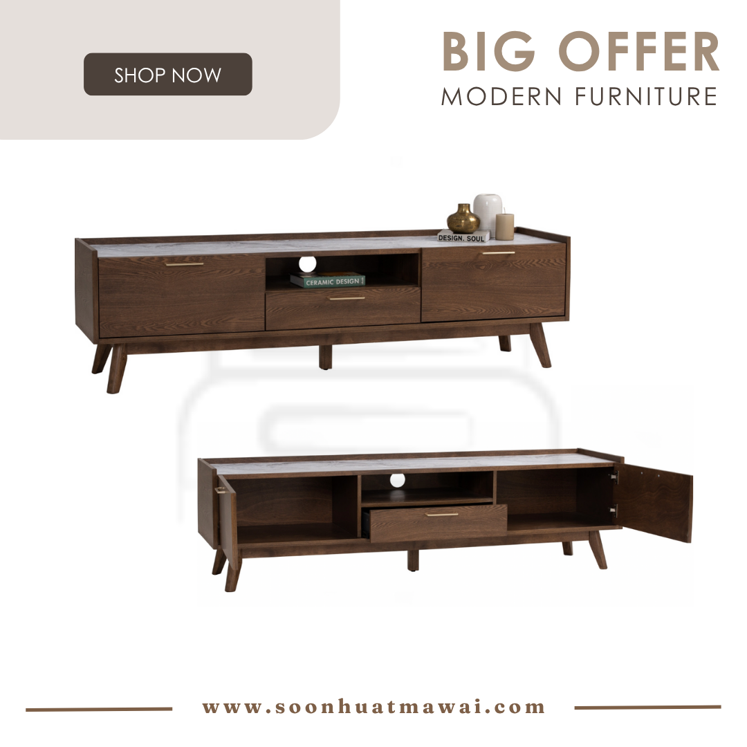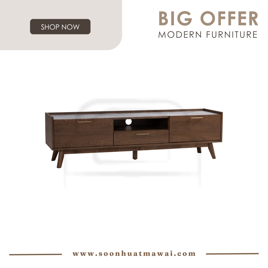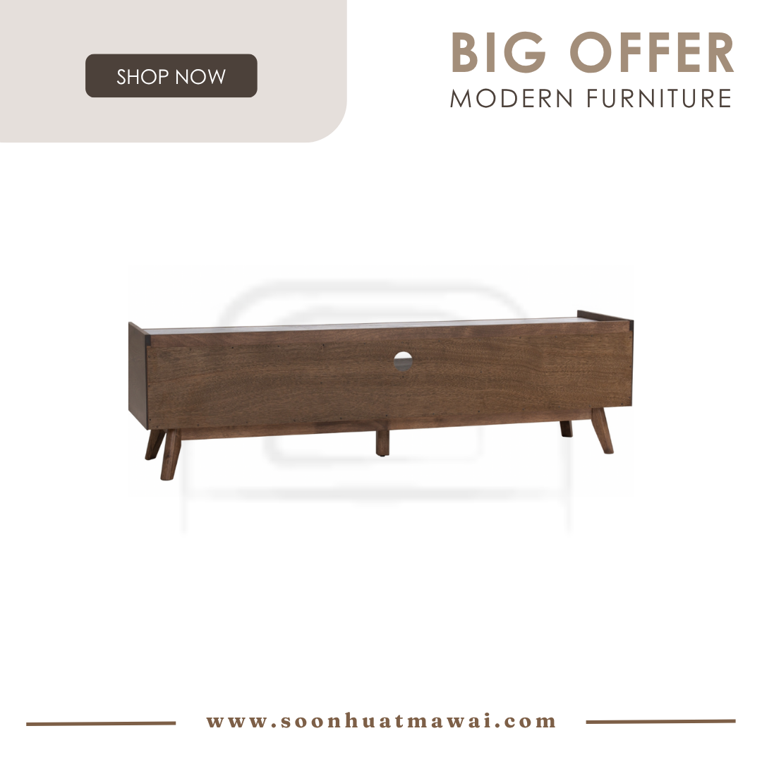 Breda 1.8M TV Cabinet in Cocoa colour leg, Cocoa colour body and White Marble colour Melamine top