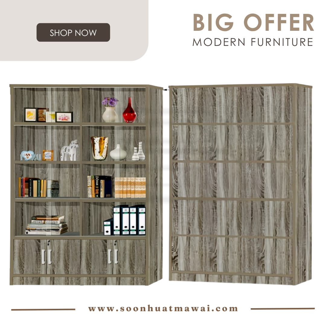 BS 170(GLASS) BOOKSHELF H220 W147 L33 BOOKSHELF 8 COMPARTMENT WITH GLASS DOOR COLOUR: GREY BS 370(GLASS) BOOKSHELF H220 W147 L33 BOOKSHELF 8 COMPARTMENT WITH GLASS DOOR COLOUR: WALNUT BS 670(GLASS) BOOKSHELF H220 W147 L33 BOOKSHELF 8 COMPARTMENT WITH GLASS DOOR COLOUR: OAK BS 070(GLASS) BOOKSHELF H220 W147 L33 BOOKSHELF 8 COMPARTMENT WITH GLASS DOOR COLOUR: WHITE **DELIVERY NOT INCLUDE