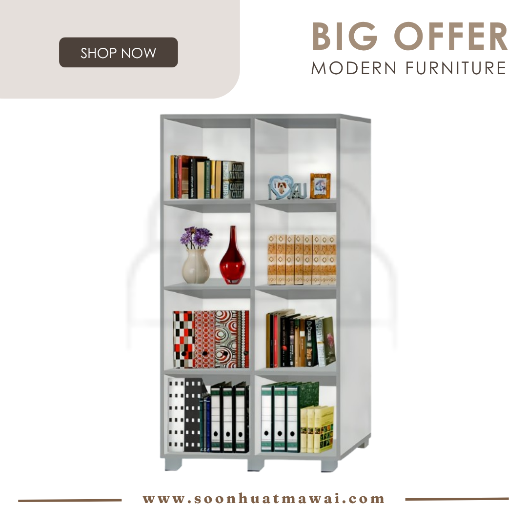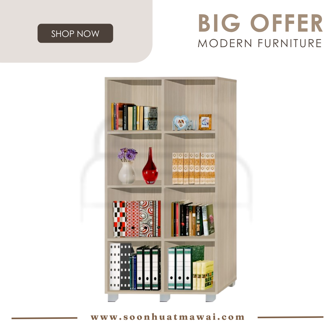 BS 821 BOOKSHELF H170 W68 L27 BOOKSHELF 8 COMPARTMENT COLOUR: GREY BS 859 BOOKSHELF H170 W68 L27 BOOKSHELF 8 COMPARTMENT COLOUR: OAK BS 878 BOOKSHELF H170 W68 L27 BOOKSHELF 8 COMPARTMENT COLOUR: WALNUT BS 877 BOOKSHELF H170 W68 L27 BOOKSHELF 8 COMPARTMENT COLOUR: WHITE **DELIVERY NOT INCLUDE