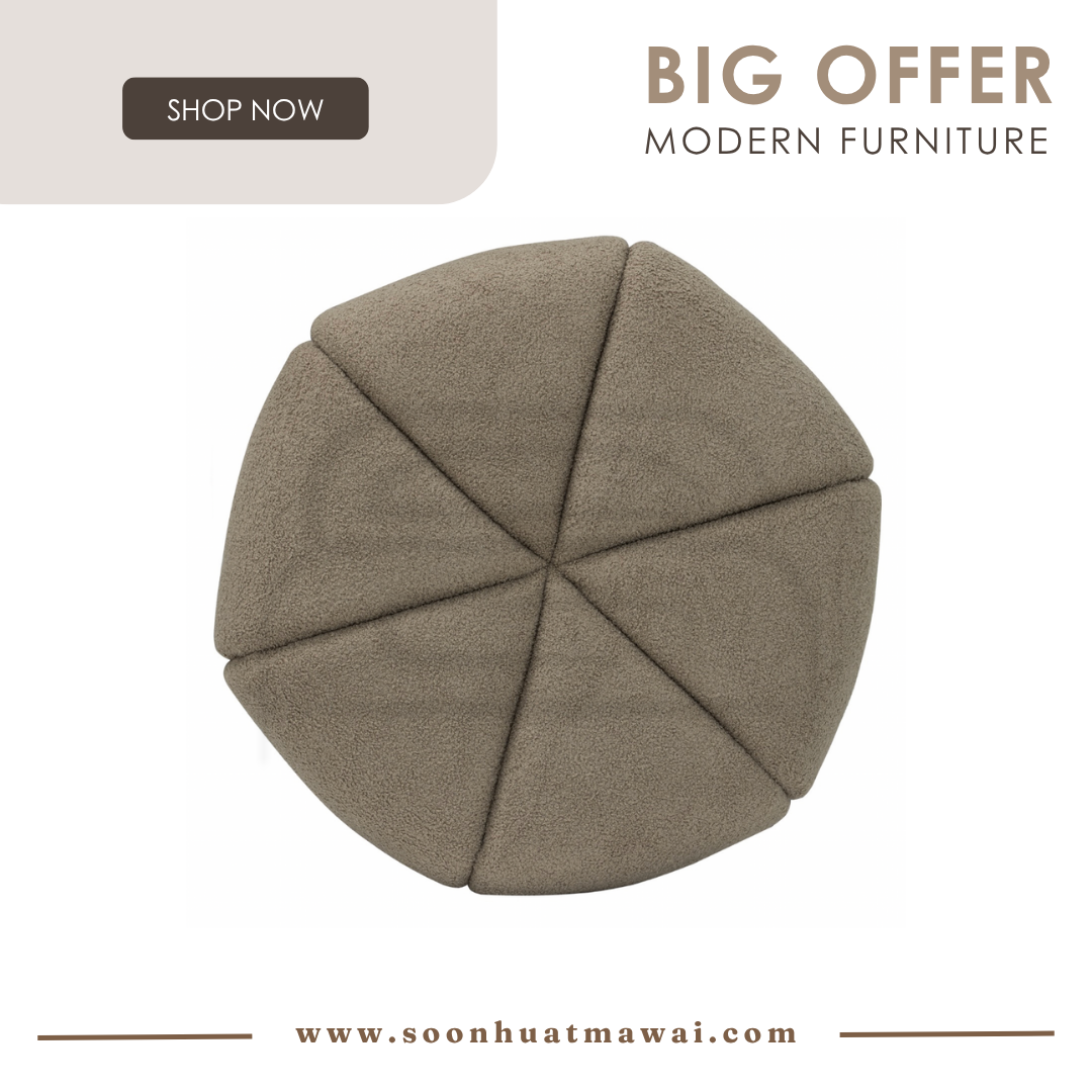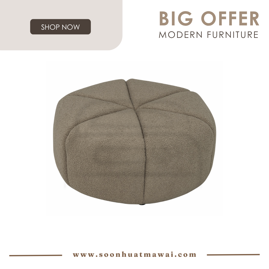 Bufey Dia 765 pouf in Cappuccino colour Teddy fabric.Â