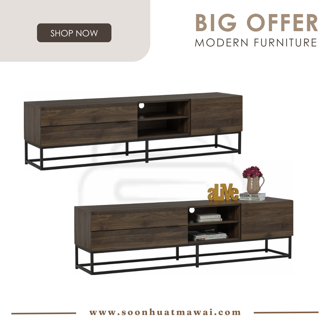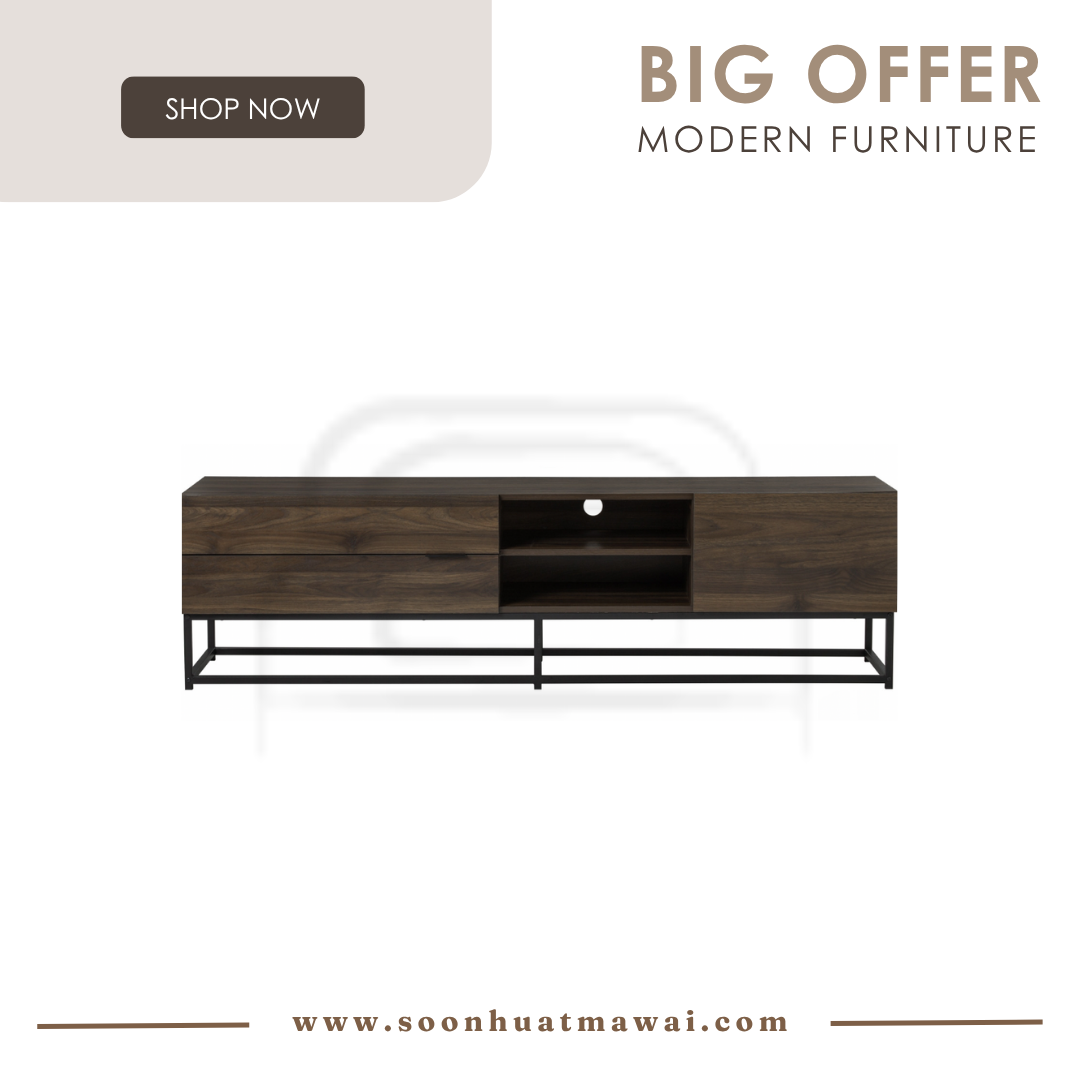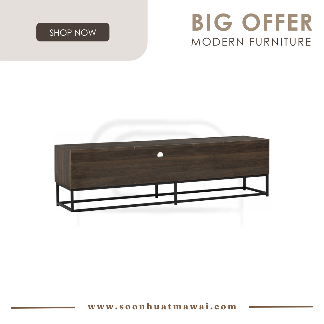 Capri 1.8m tv cabinet in Matt Black Epoxy colour leg, Walnut colour top