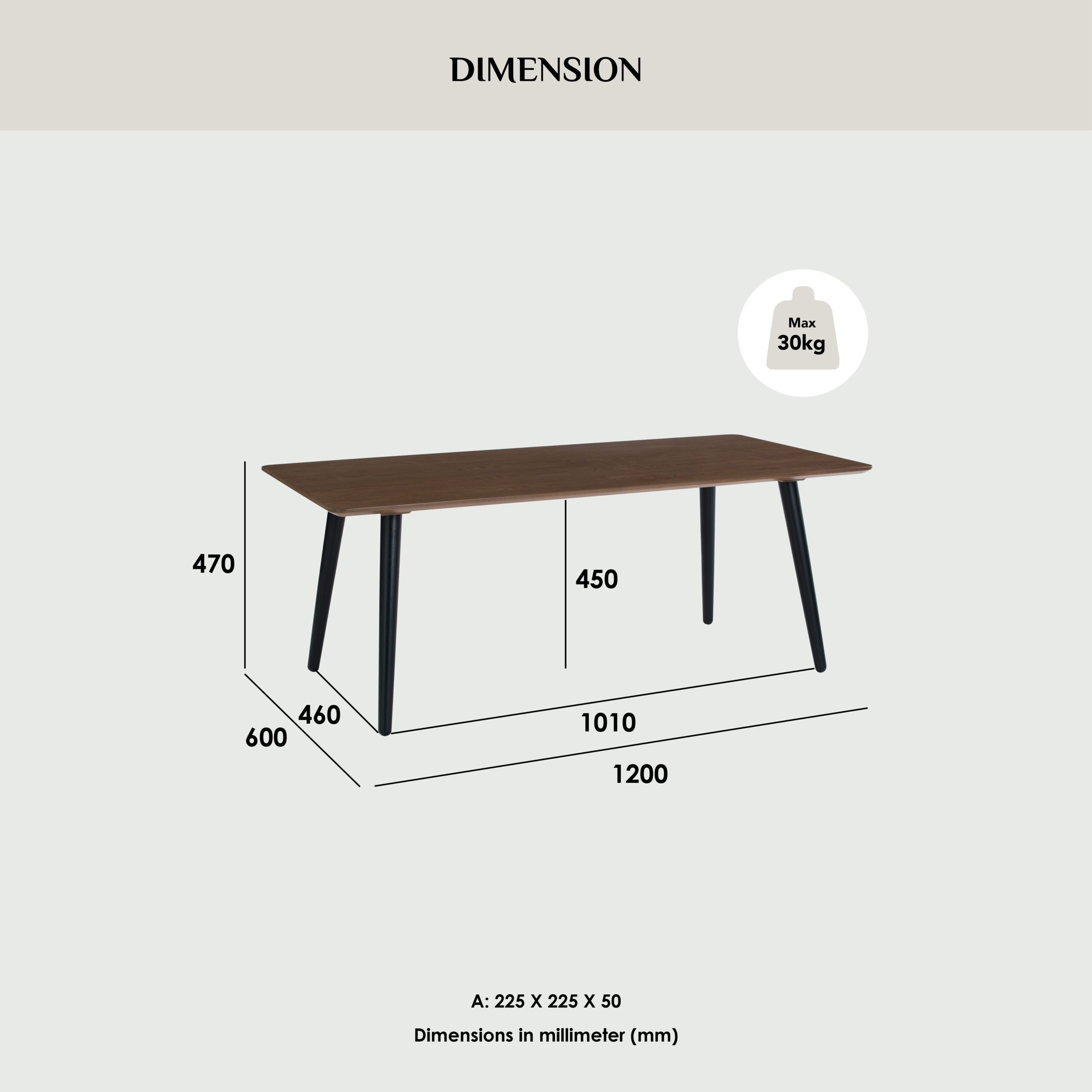 Dimension (mm): L1200 W600 H470 T18