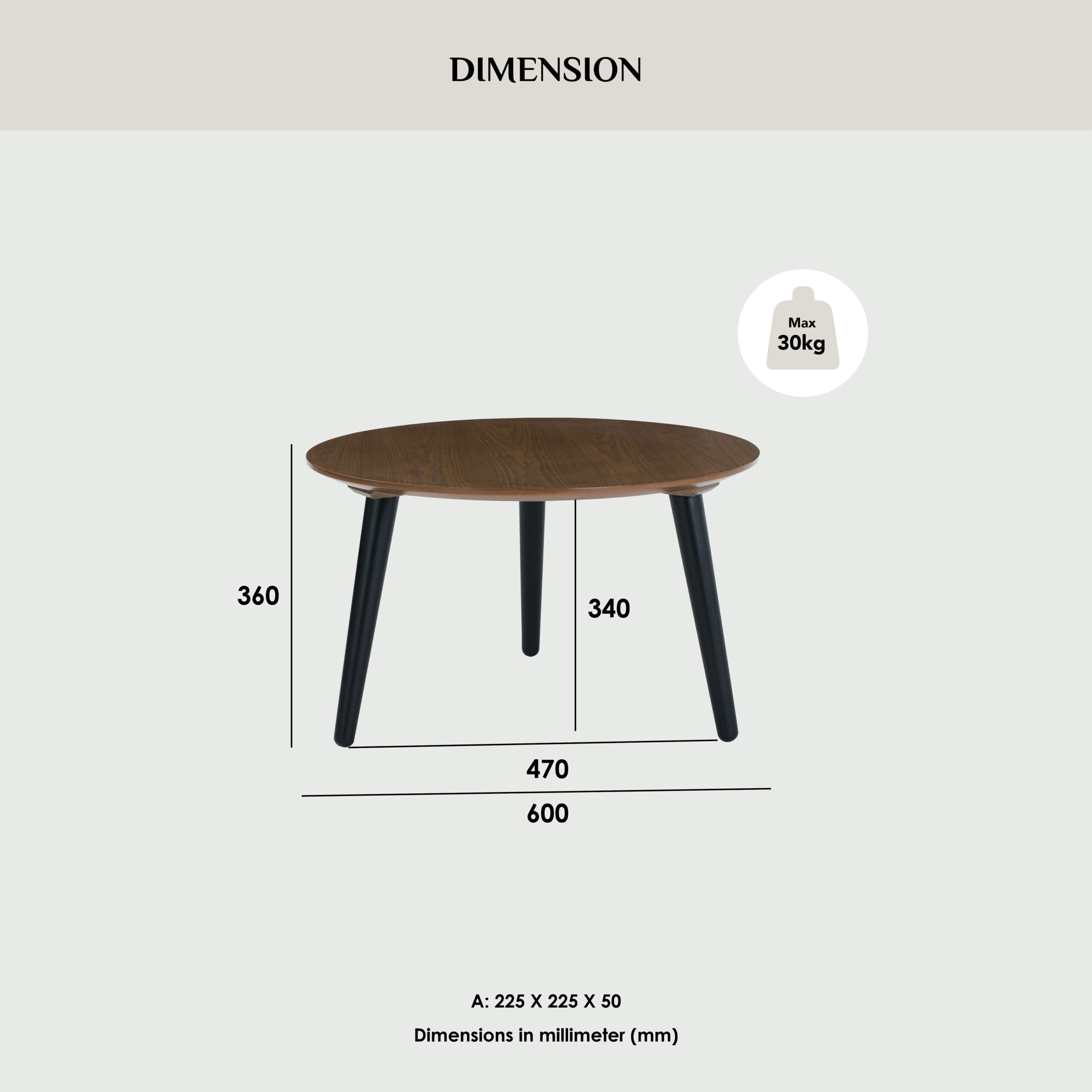 Carsyn Round coffee table in Cocoa colour top, Black colour leg