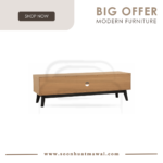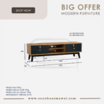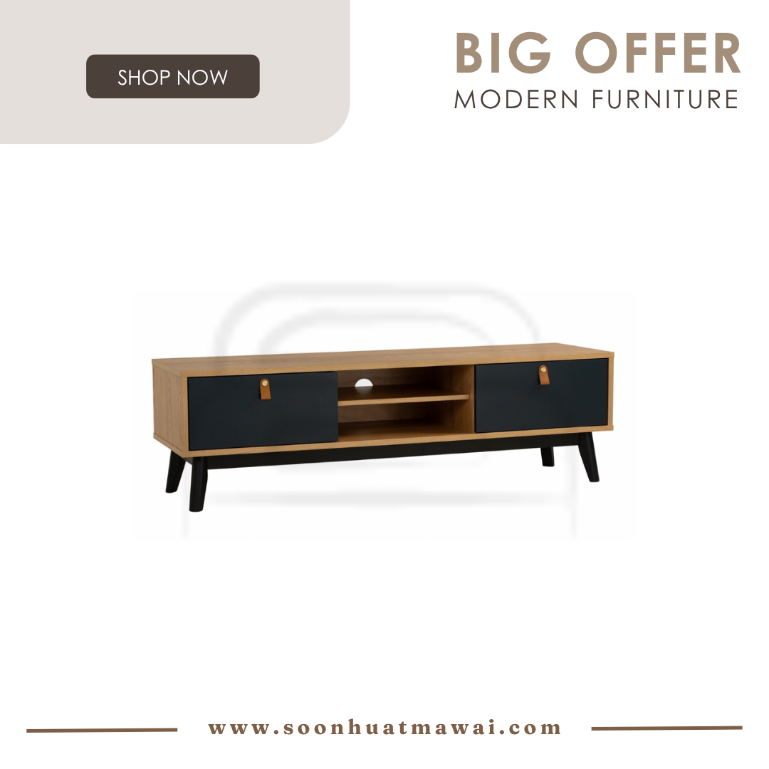 Castor 1.5M TV Cabinet in Natural Ash veneer body, Space Blue colour drawer with Black colour leg
