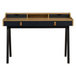 Castor working desk in Natural Ash veneer body, Space Blue colour drawer with Black colour leg