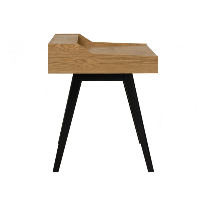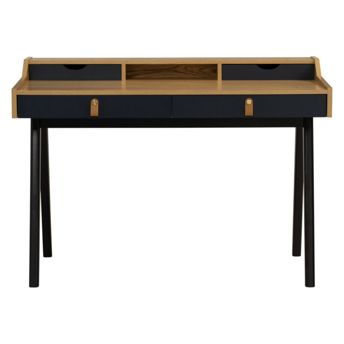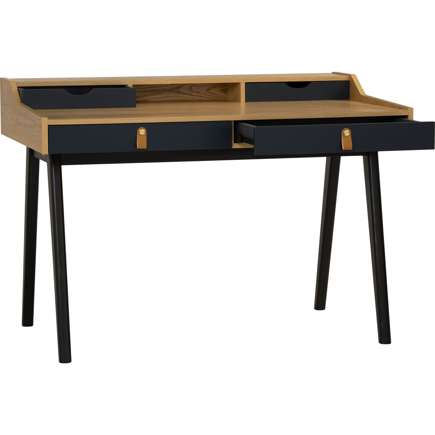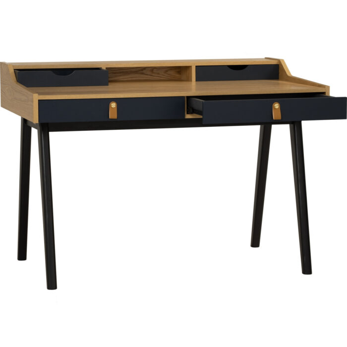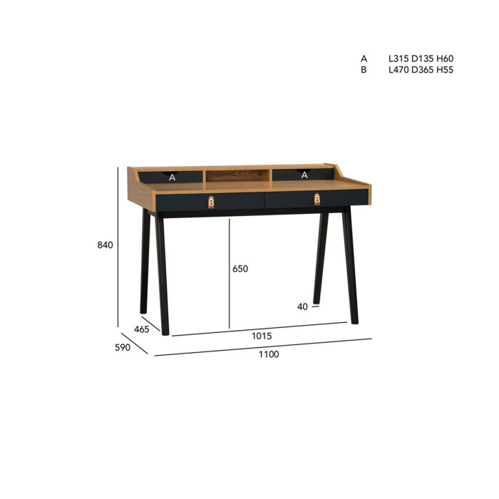 Castor working desk in Natural Ash veneer body, Space Blue colour drawer with Black colour leg