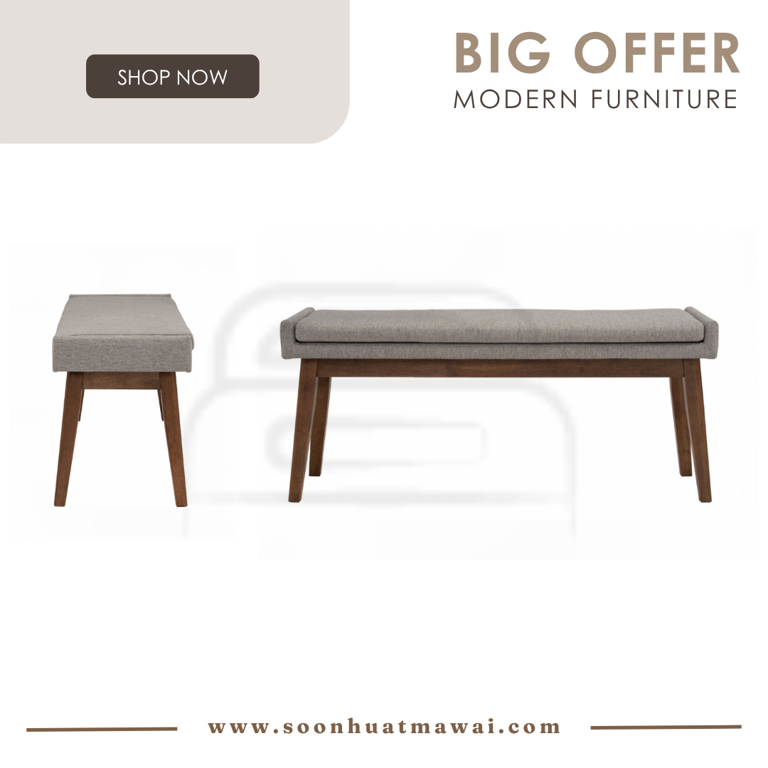 Chanel 1.1 M bench in Cocoa colour leg and Light Grey colour Drill fabric