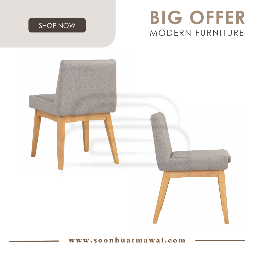 Chanel dining chair in Natural colour leg, Light Grey colour Drill fabric frame