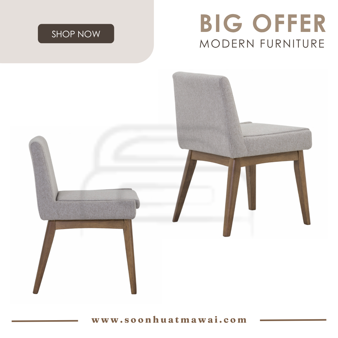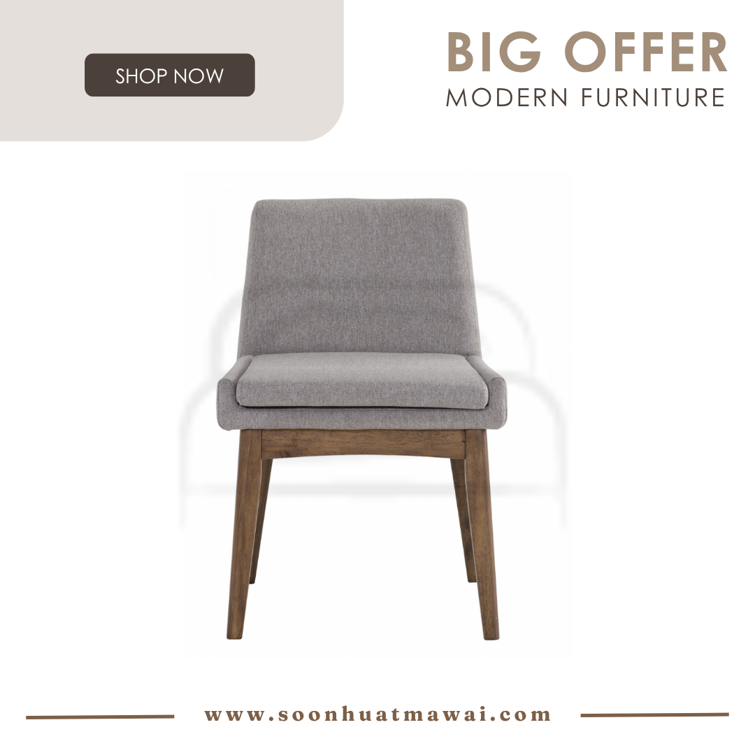 Chanel dining chair in Cocoa colour leg, Light Grey colour Drill fabric frame