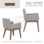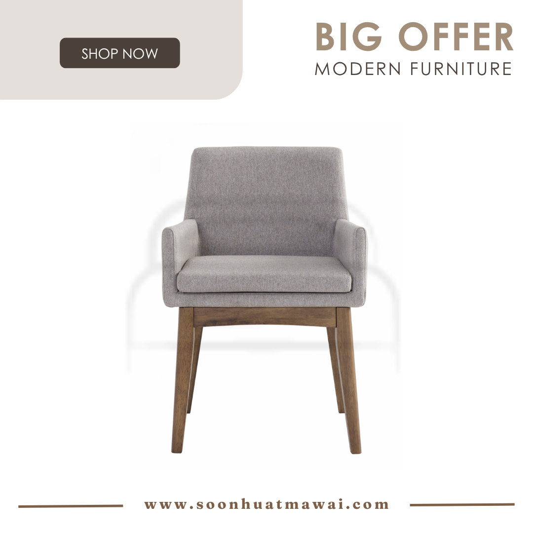 Chanel arm chair in Natural colour leg, Dolphin colour Dimity fabric frame