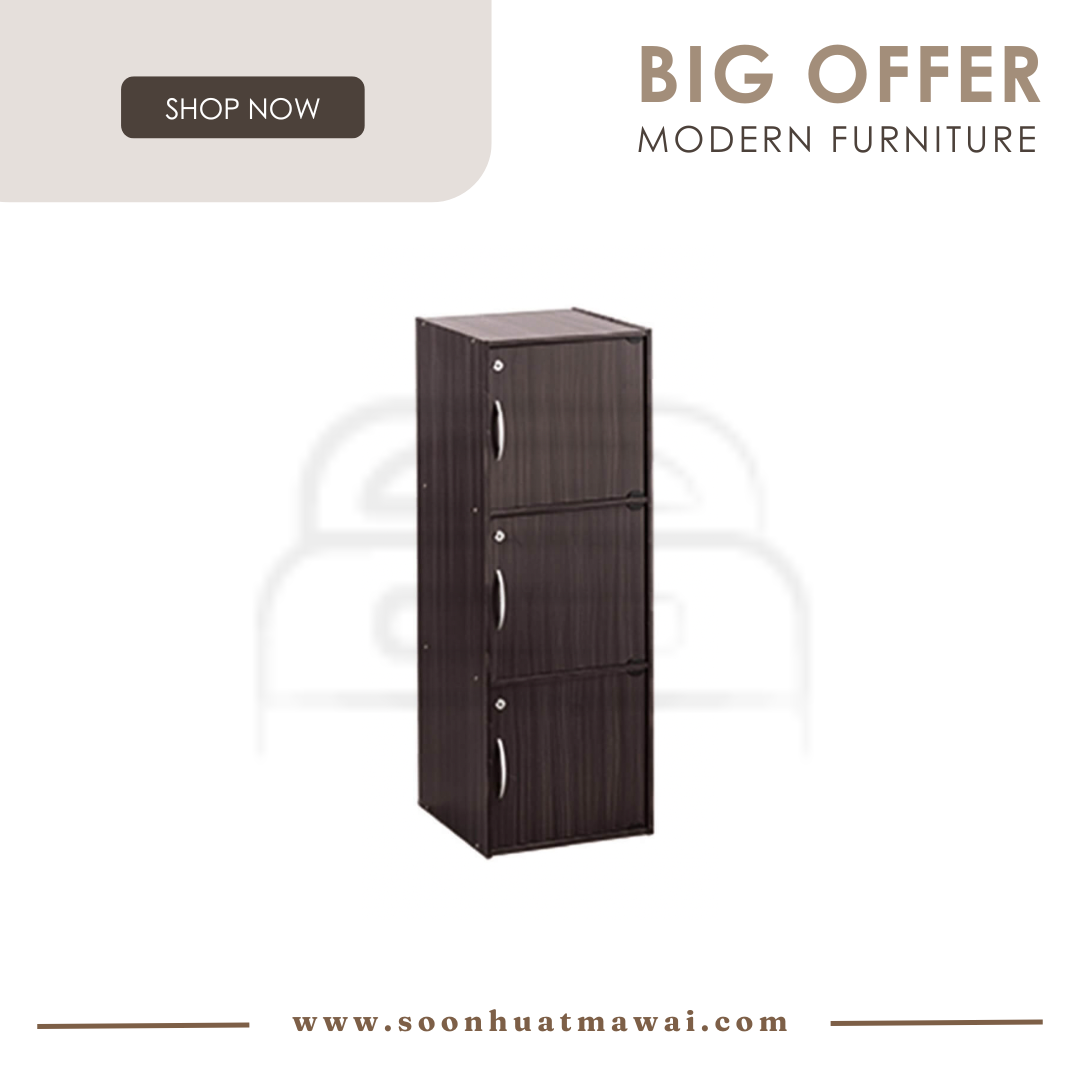 Codey 3 door storage box with lock in Light Cappuccino colour