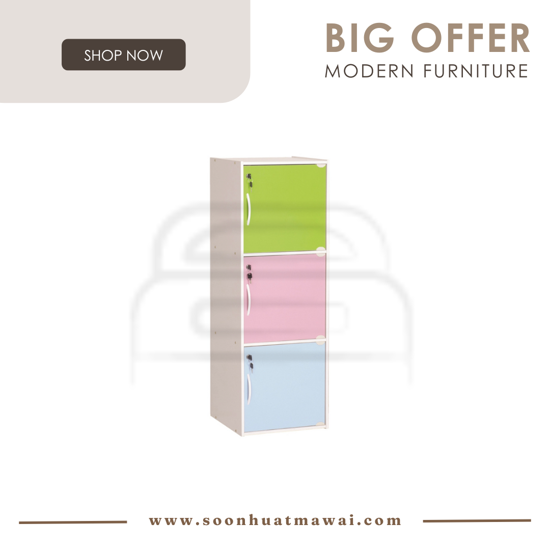 Codey 3 door storage box with lock in Light Colorful colour