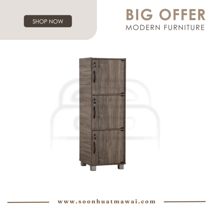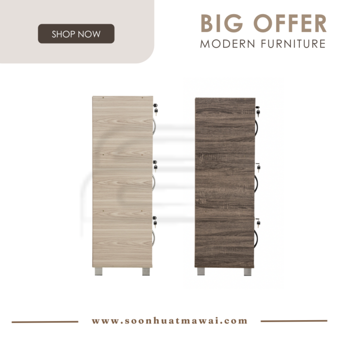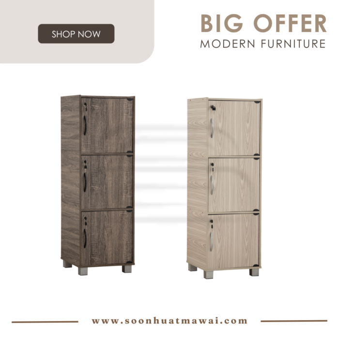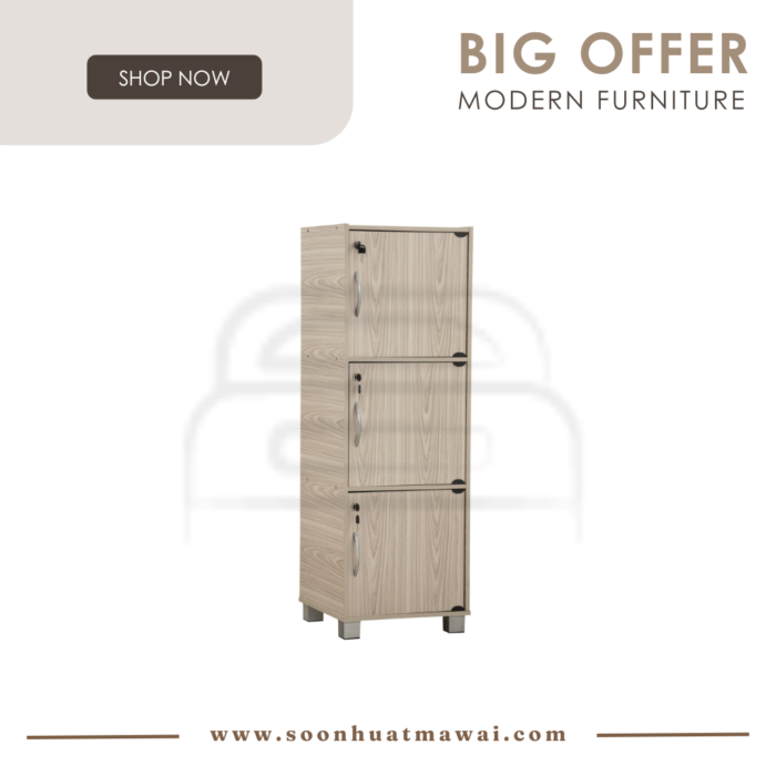 Codey 3 door storage box with lock and leg in Fleton Oak colour