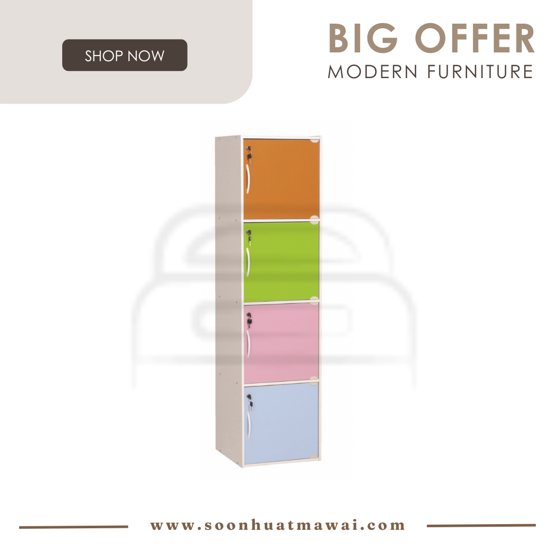 Codey 4 door storage box with lock in Light Colorful colour