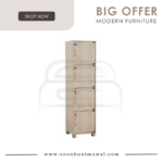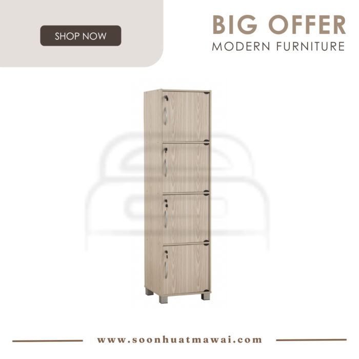 Codey 4 door storage box with lock in Light Cappuccino colour