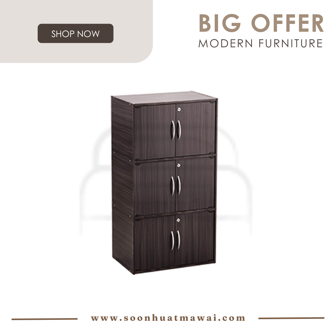 Codey 6 door storage box with lock in Light Cappuccino colour