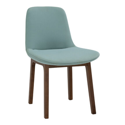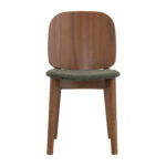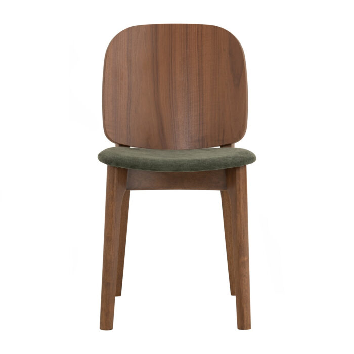 Cora dining chair in Cocoa colour frame, Walnut veneer back and Deep Green colour Danny A fabric seat