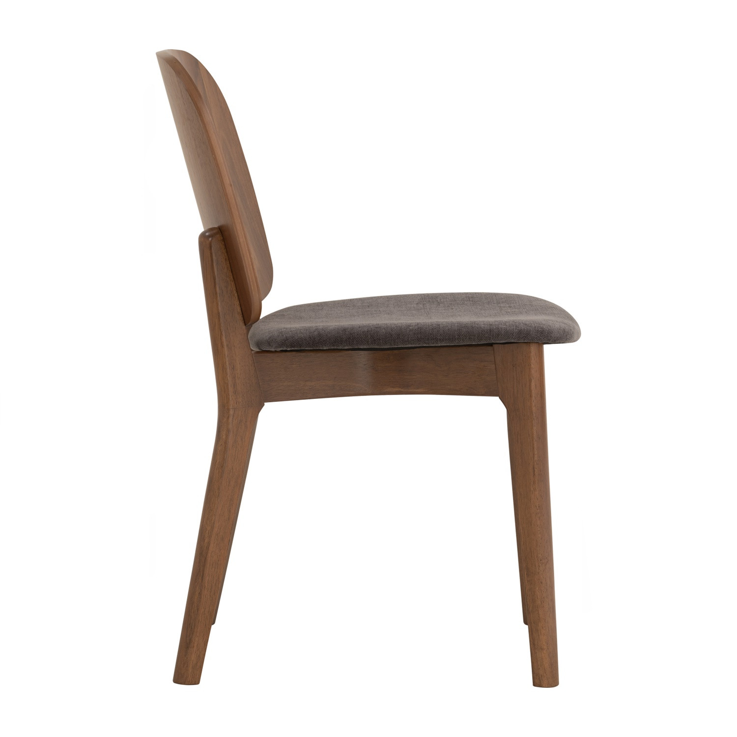 Cora dining chair in Cocoa colour frame, Walnut veneer back and Deep Grey colour Danny A fabric seat