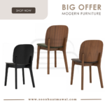 Cora dining chair in Cocoa colour frame, Walnut veneer back and Deep Grey colour Danny A fabric seat