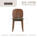 Cora dining chair in Cocoa colour frame, Walnut veneer back and Deep Green colour Danny A fabric seat