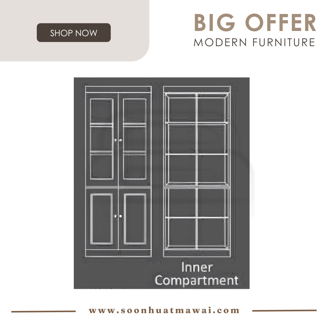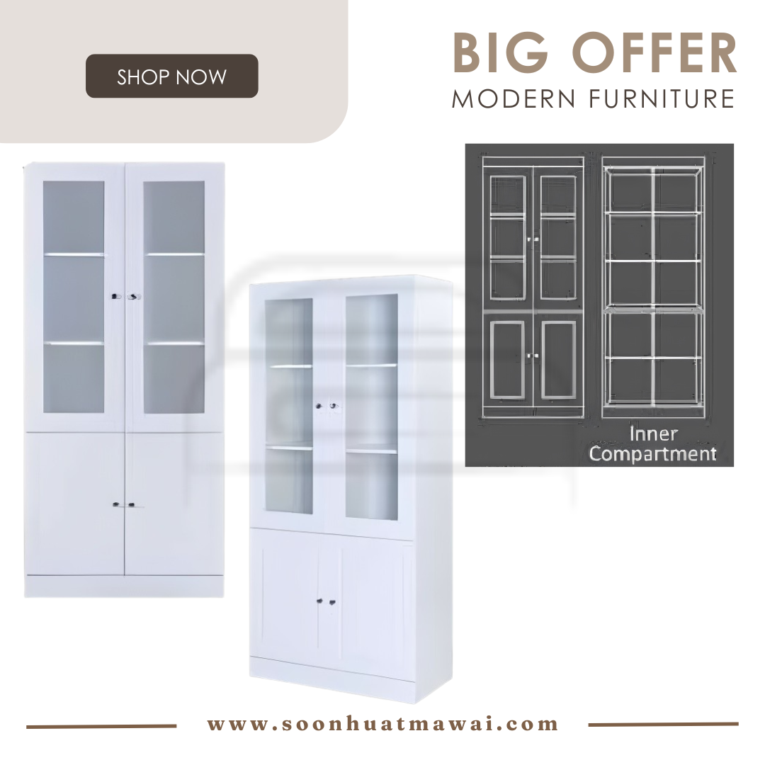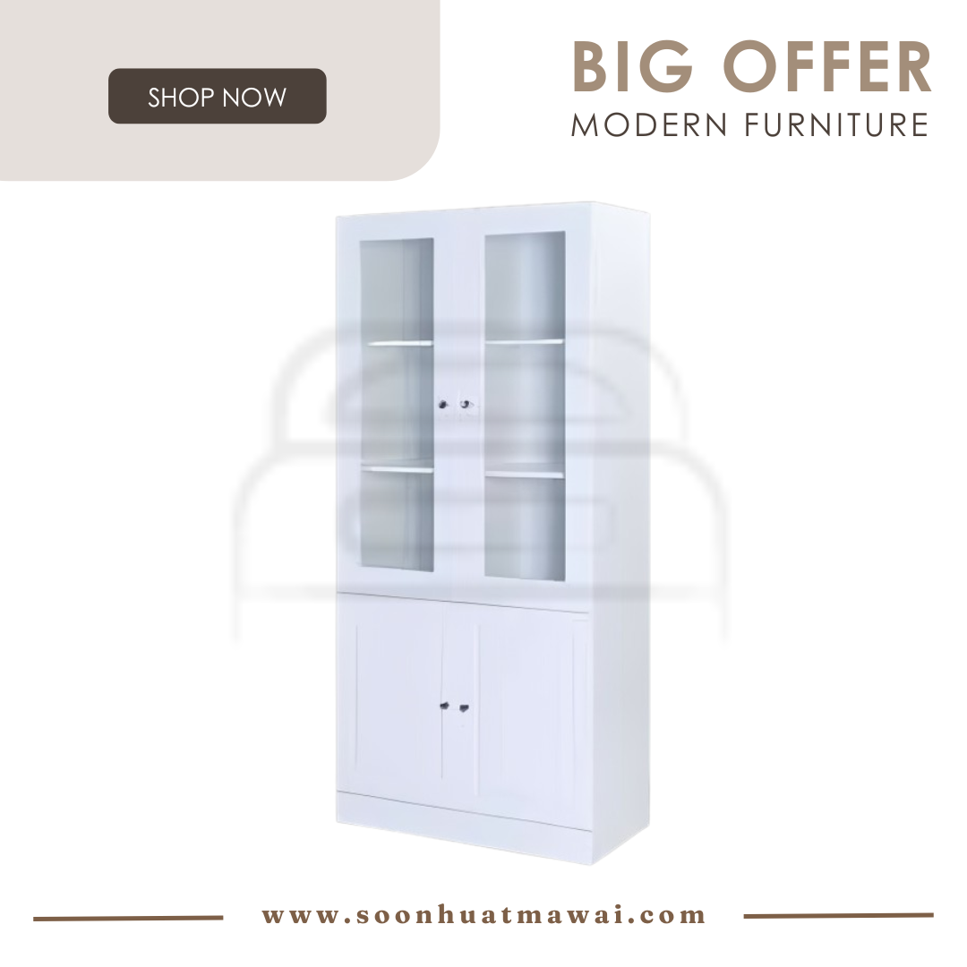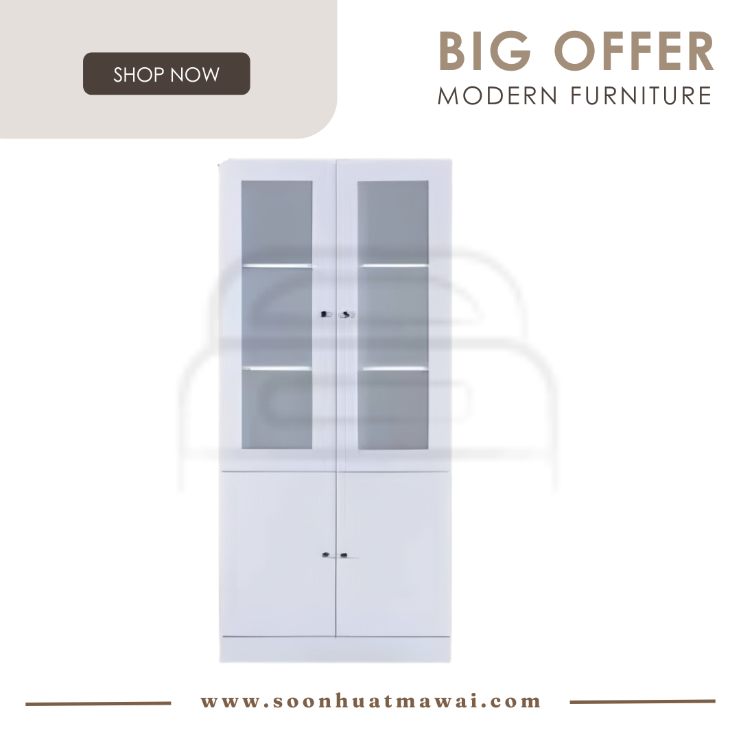 CT3049 BOOK SHELF 2 DOOR BOOKSHELF SIZE: H1810 L810 D400 COLOUR: WHITE