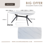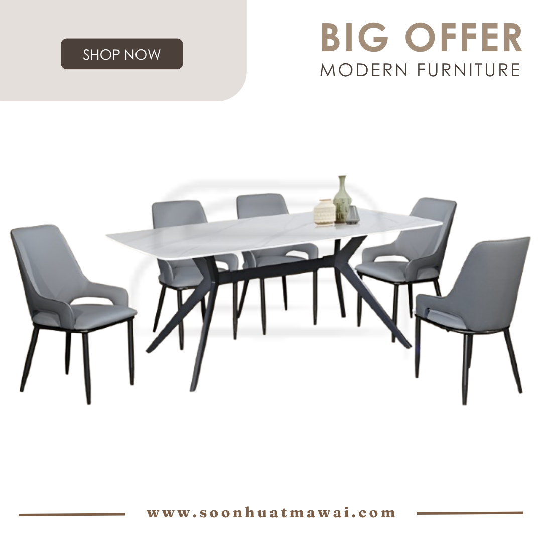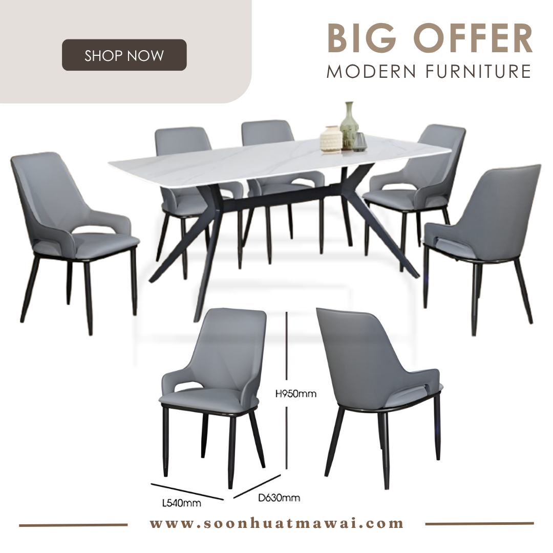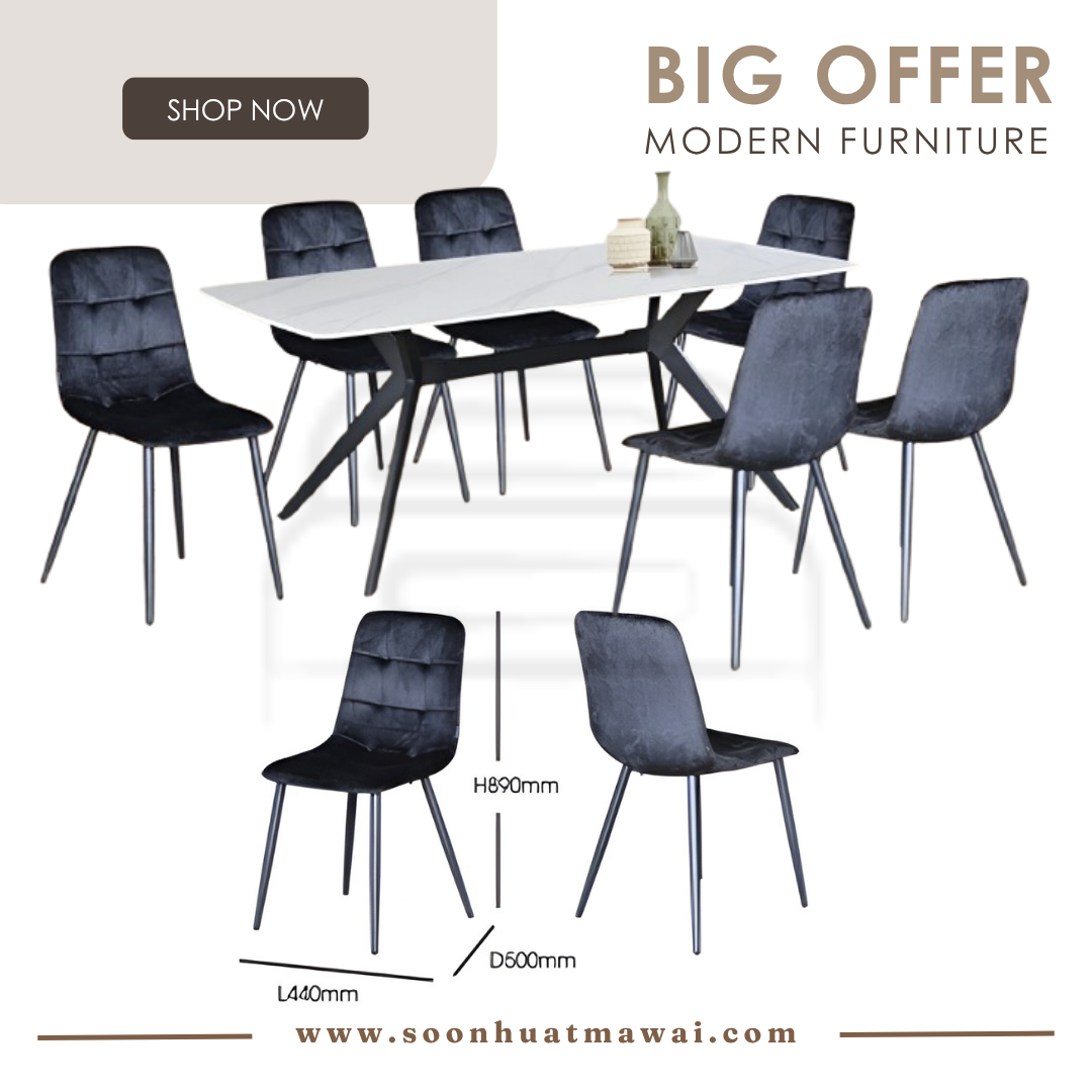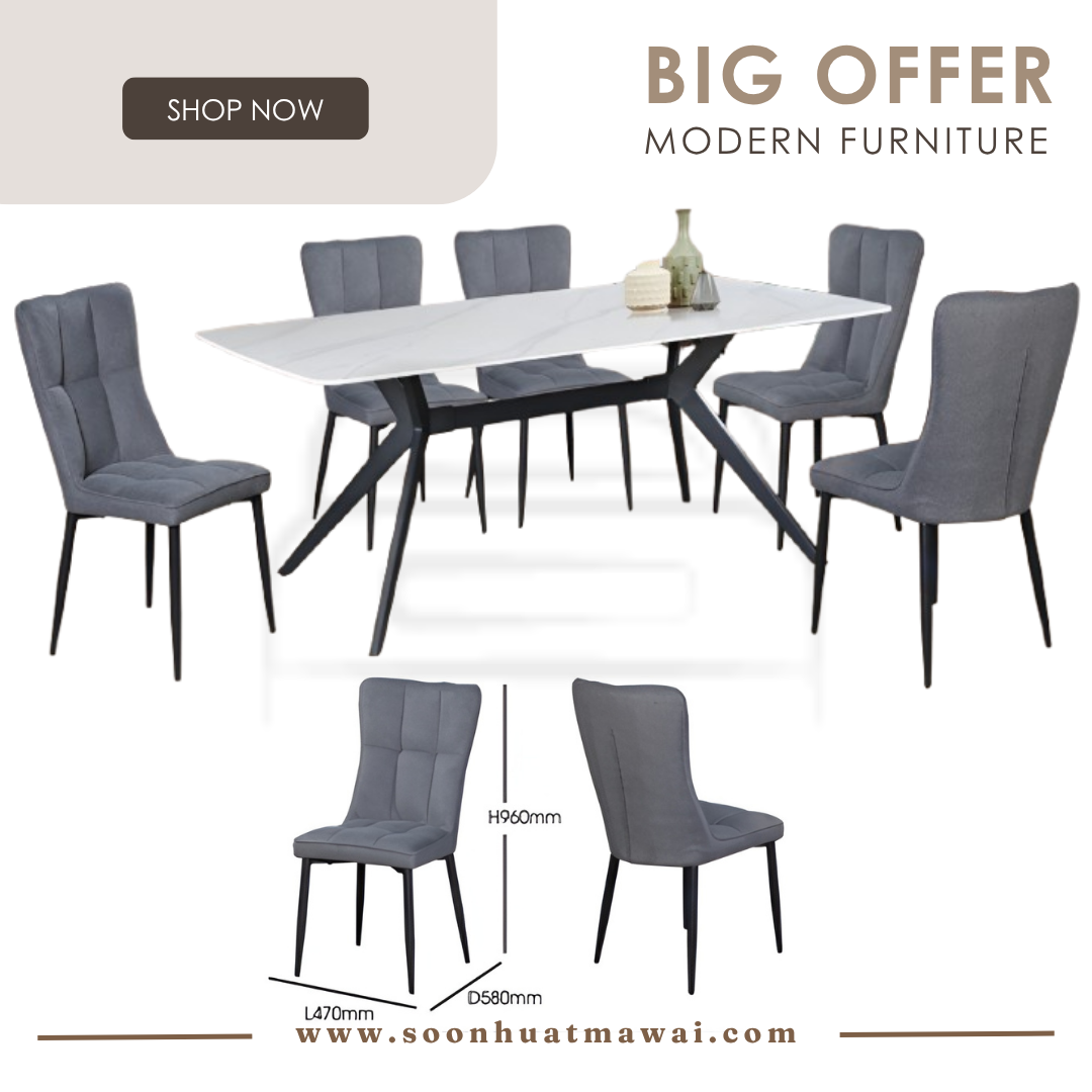 DT410A + J-C8-8 / TC-986 / YTC-036 DINING SET 1+6 DT410A L180 D90 H76 SINTERED STONE DINING TABLE J-C8-8 (GREY)(FABRIC) L47 D58 H96 DINING CHAIR DESIGN CHAIR CAN CHOOSE: - TC-986 (DARK GREY)(PU) L54 D63 H95 - YTC-036 L44 D50 H89 **DELIVERY NOT INCLUDE