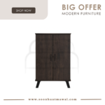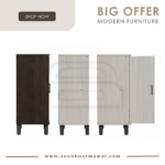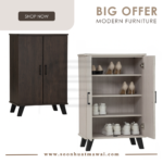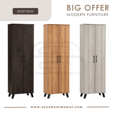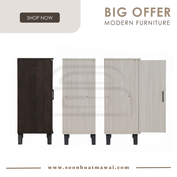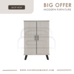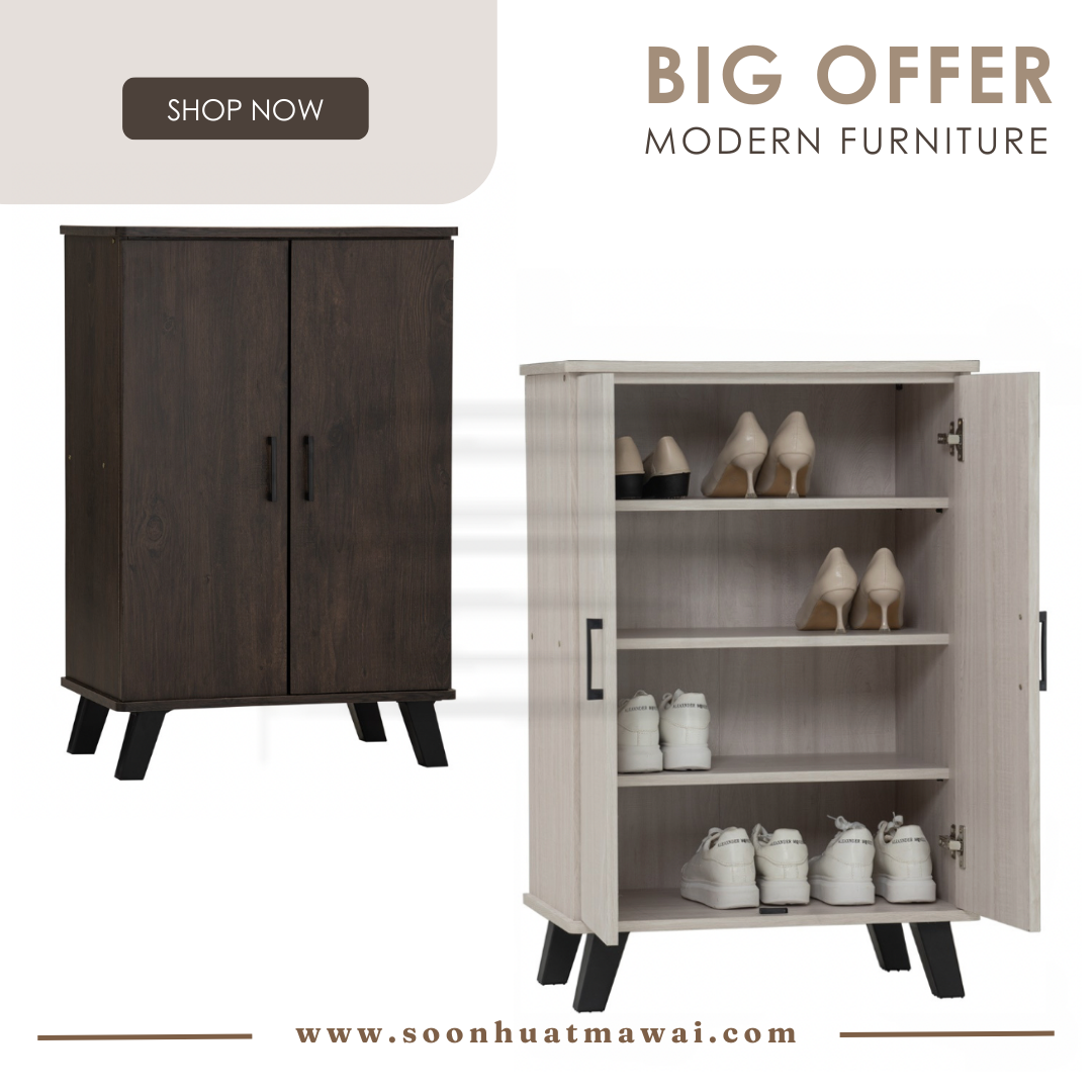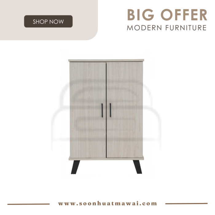 Everett low 2 door shoe cabinet with Black colour leg, Light Oak colour body