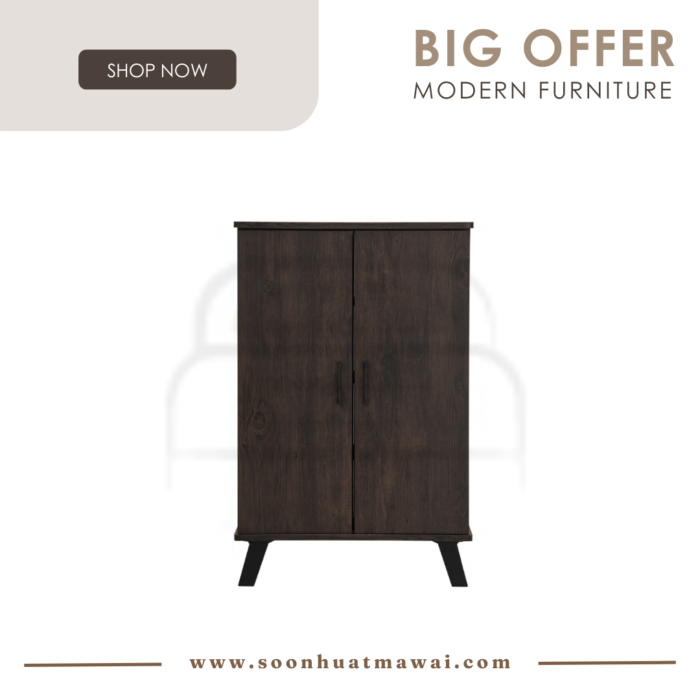 Everett low 2 door shoe cabinet with Black colour leg, Walnut colour body