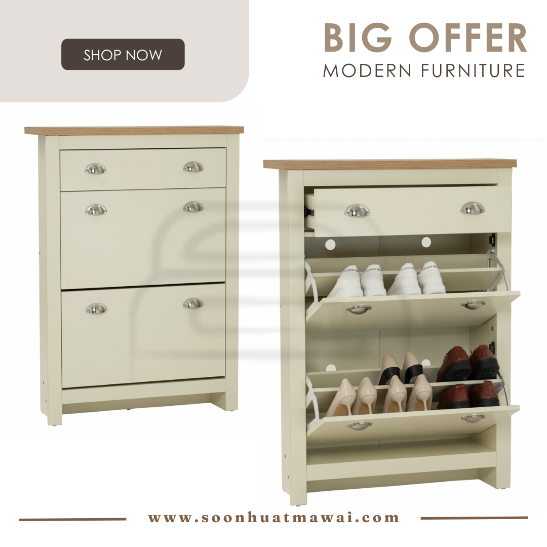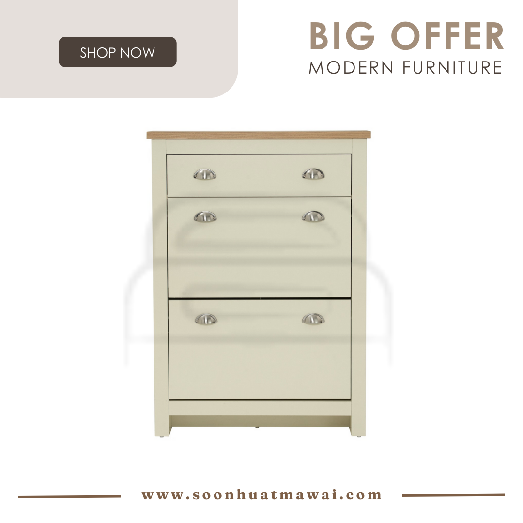 Faro shoe cabinet with Cream colour body and Oak colour top