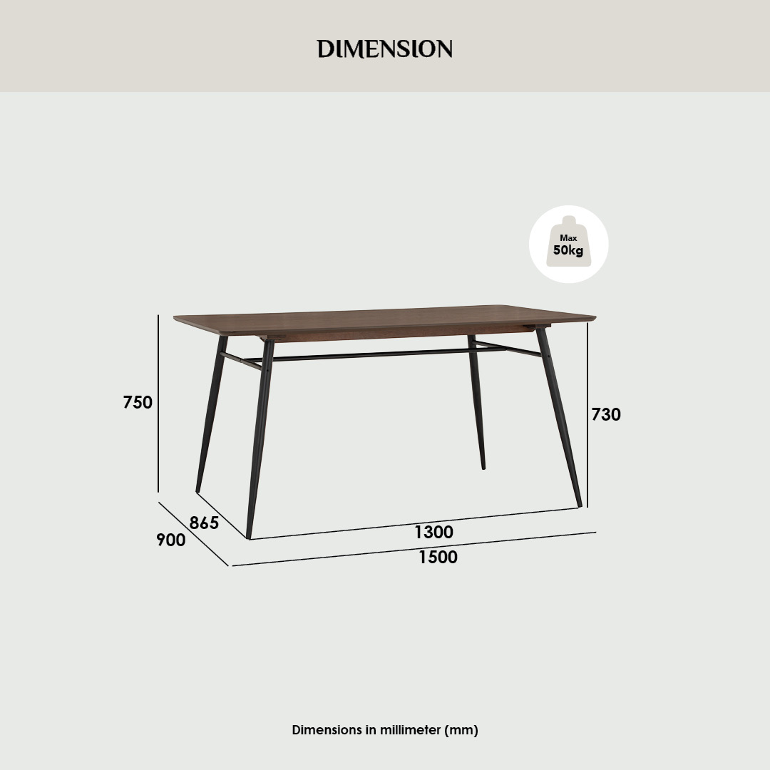 Ferma 900×1500 dining table in Matt Black Epoxy colour leg, Cocoa colour top