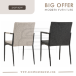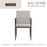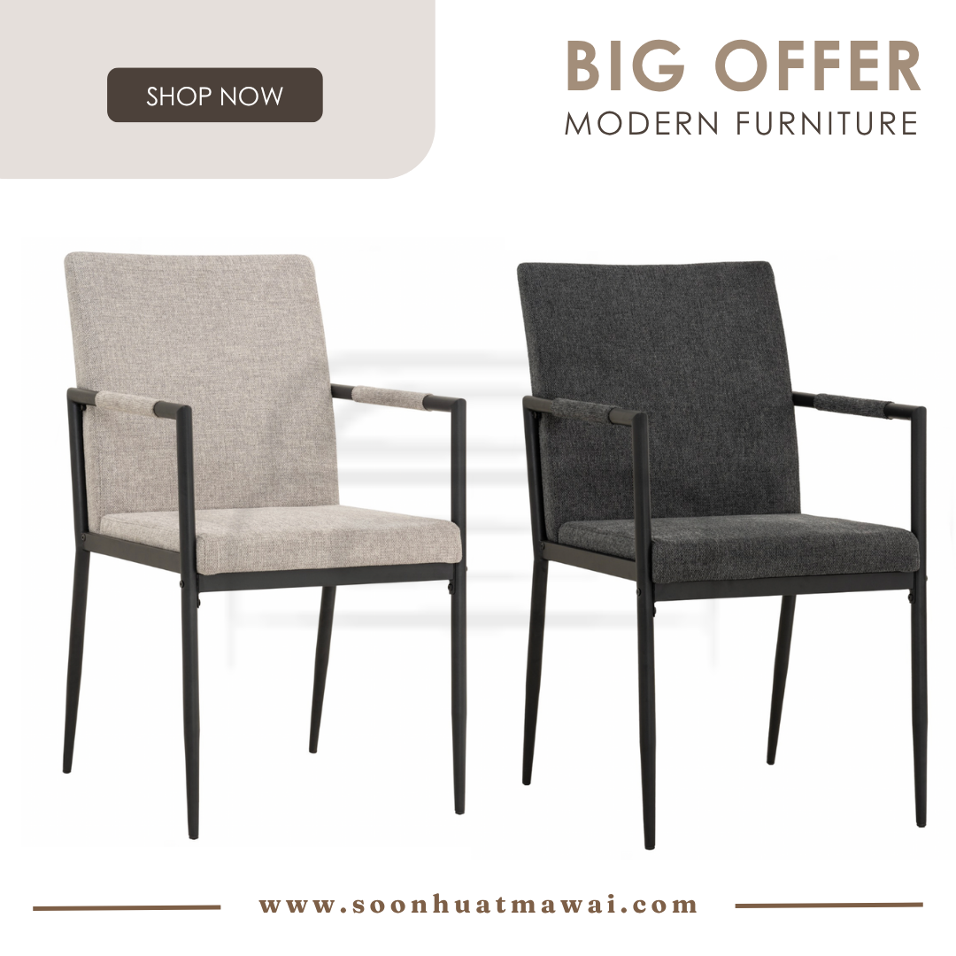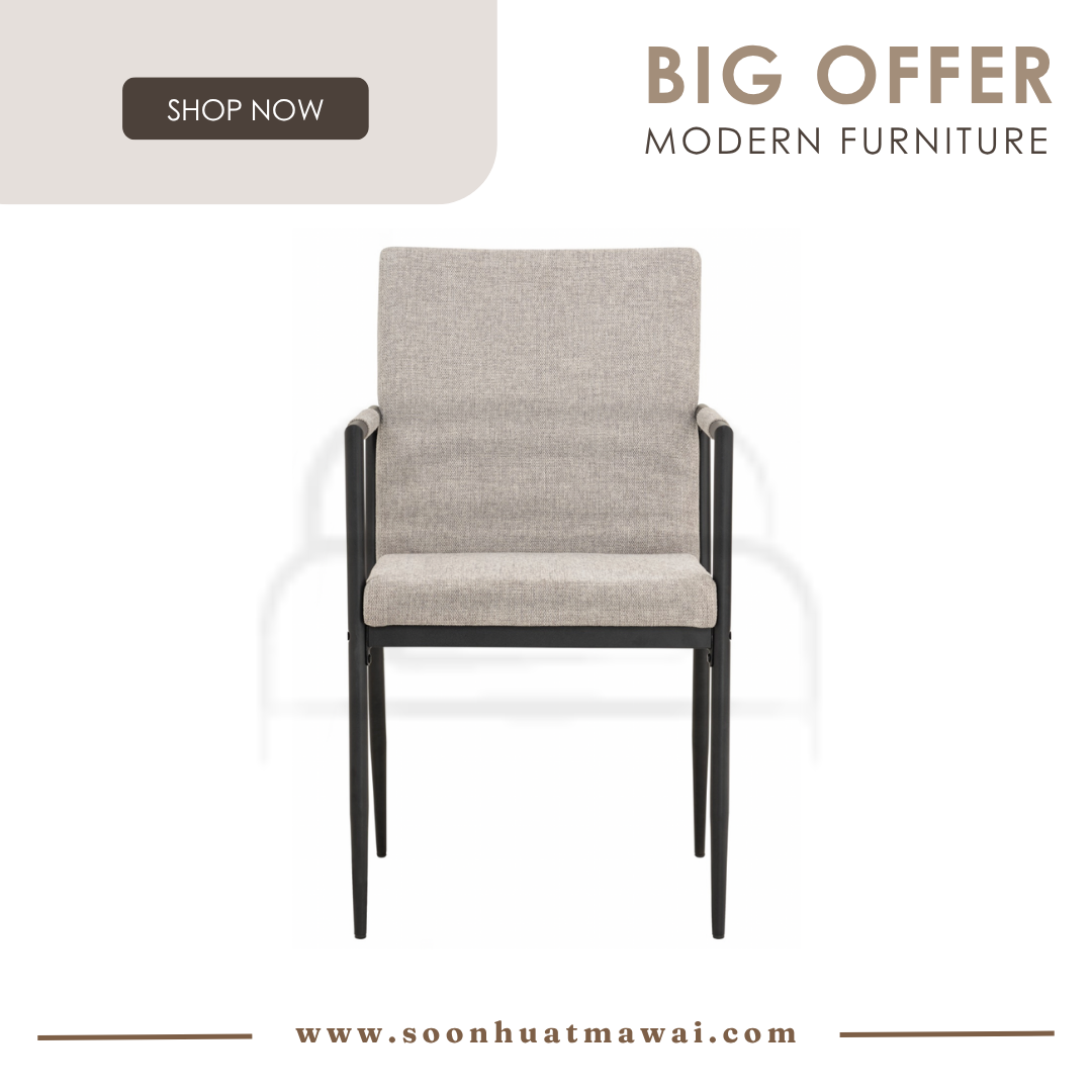 Ferma dining chair with Matt Black Epoxy colour leg, Greymist colour Belfast fabric seat and back