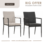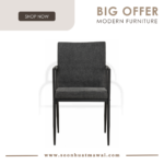 Ferma dining chair with Matt Black Epoxy colour leg, Anthracite colour Belfast fabric seat and back