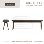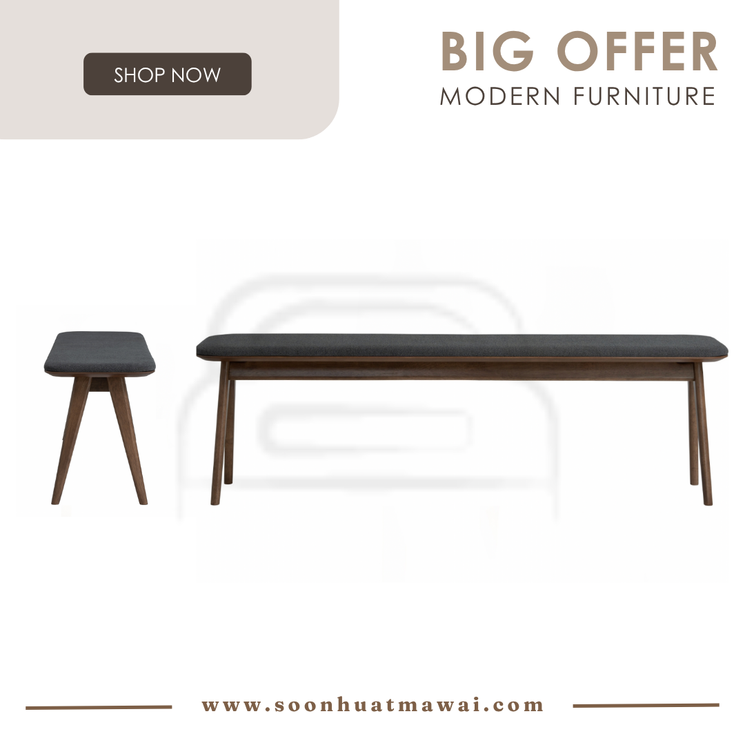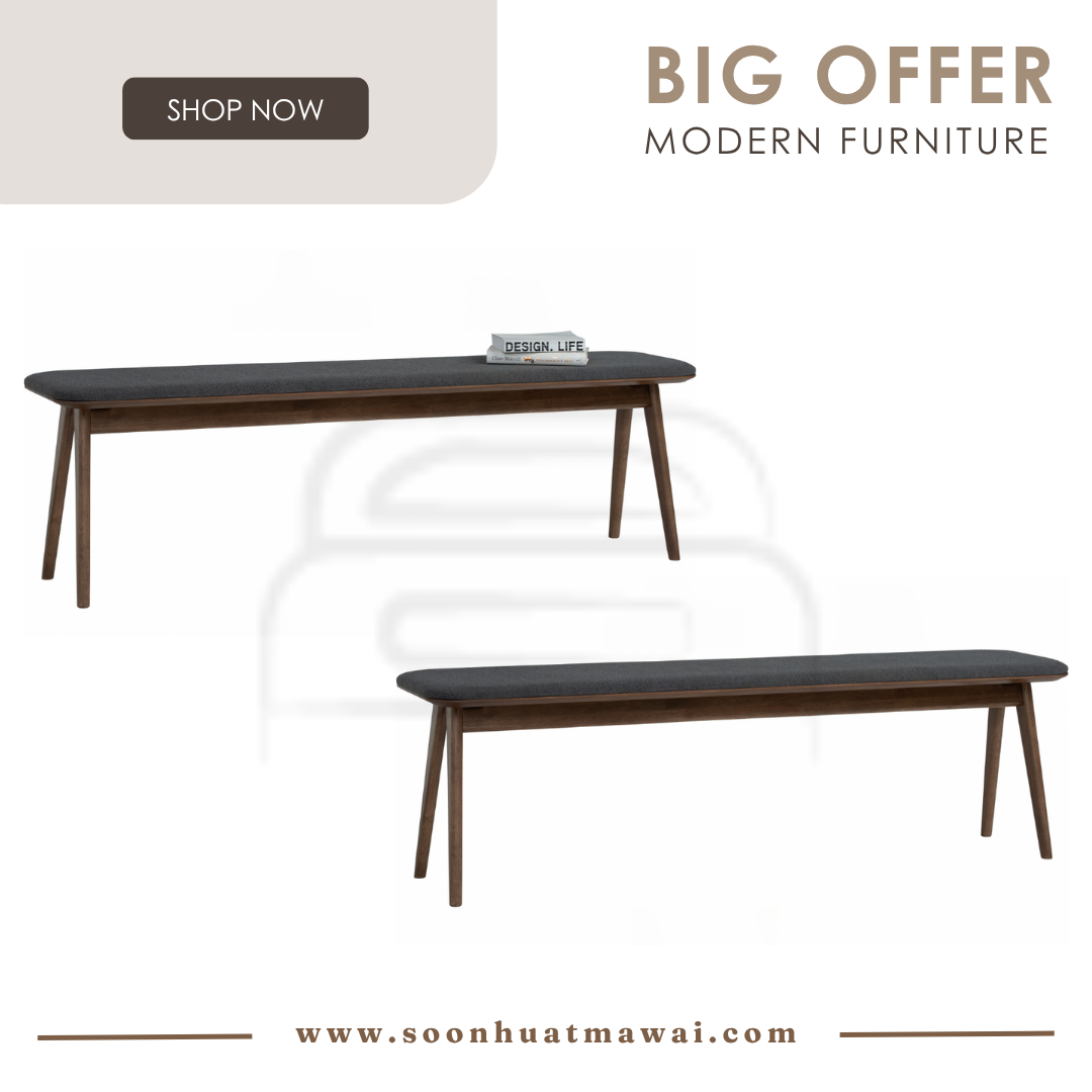 Fidel bench in Cocoa colour leg, Dark Grey colour Bruta fabric