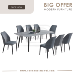 G918+CRM9018 + 263 ZQ DINING SET 1+8 G918+CRM9018 (9012 GLOSSY) L180 W90 H75 CERAMIC DINING TABLE 263 ZQ (PET FRIENDLY FABRIC) W46 D57 H89 DINING CHAIR DESIGN CHAIR CAN CHOOSE: - 239 ZQ (PET FRIENDLY PU) W44 D56 H90 - 240 ZQ (PET FRIENDLY PU) W44 D56 H90 - 241 ZQ (PET FRIENDLY PU) W44 D56 H90 - 242 ZQ (PET FRIENDLY PU) W44 D56 H90 - 264 ZQ (PET FRIENDLY PU) W46 D57 H89 **DELIVERY NOT INCLUDE