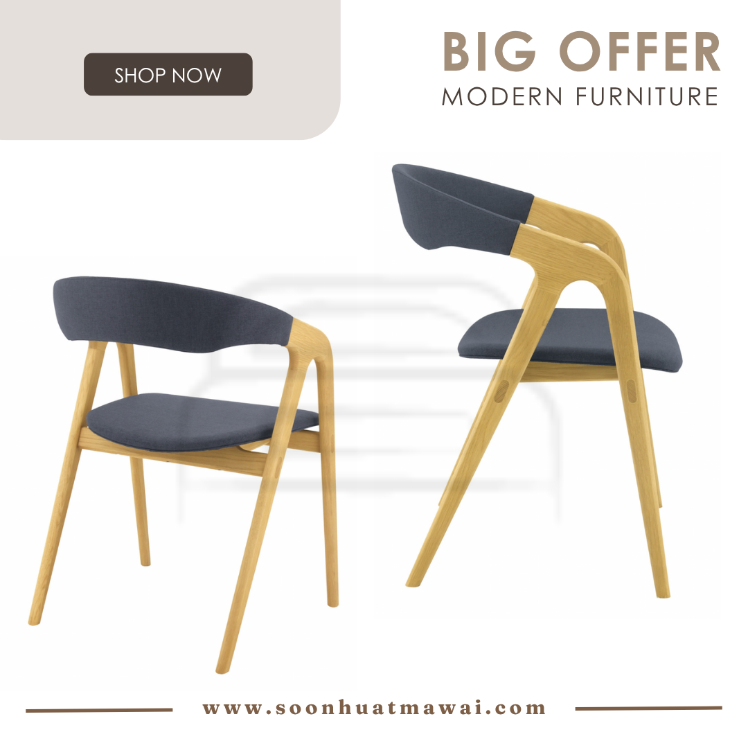 Ganit Dining Chair with Oak frame, Dim Grey colour Highland fabric seat
