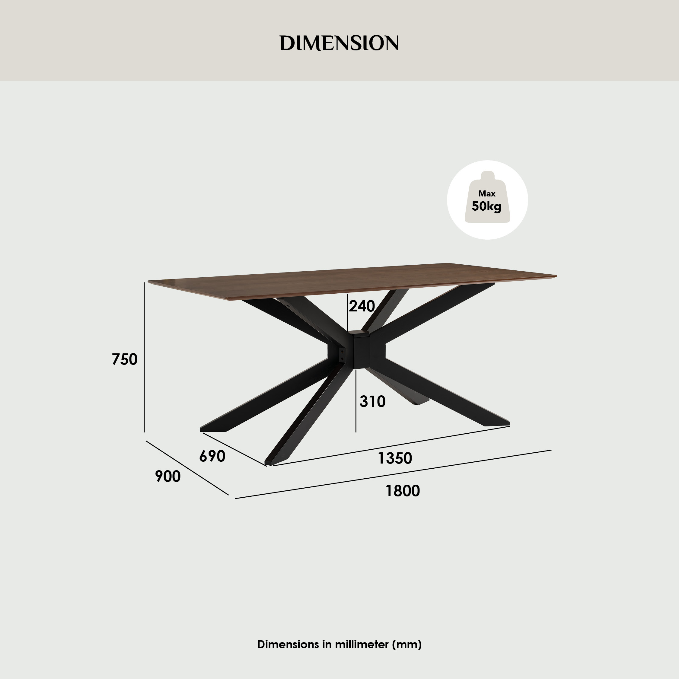 Gerald 900×1800 dining table leg in Black colour, Cocoa colour top
