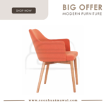 Gitel chair in Natural colour leg, Carrot colour Delaine fabric frame