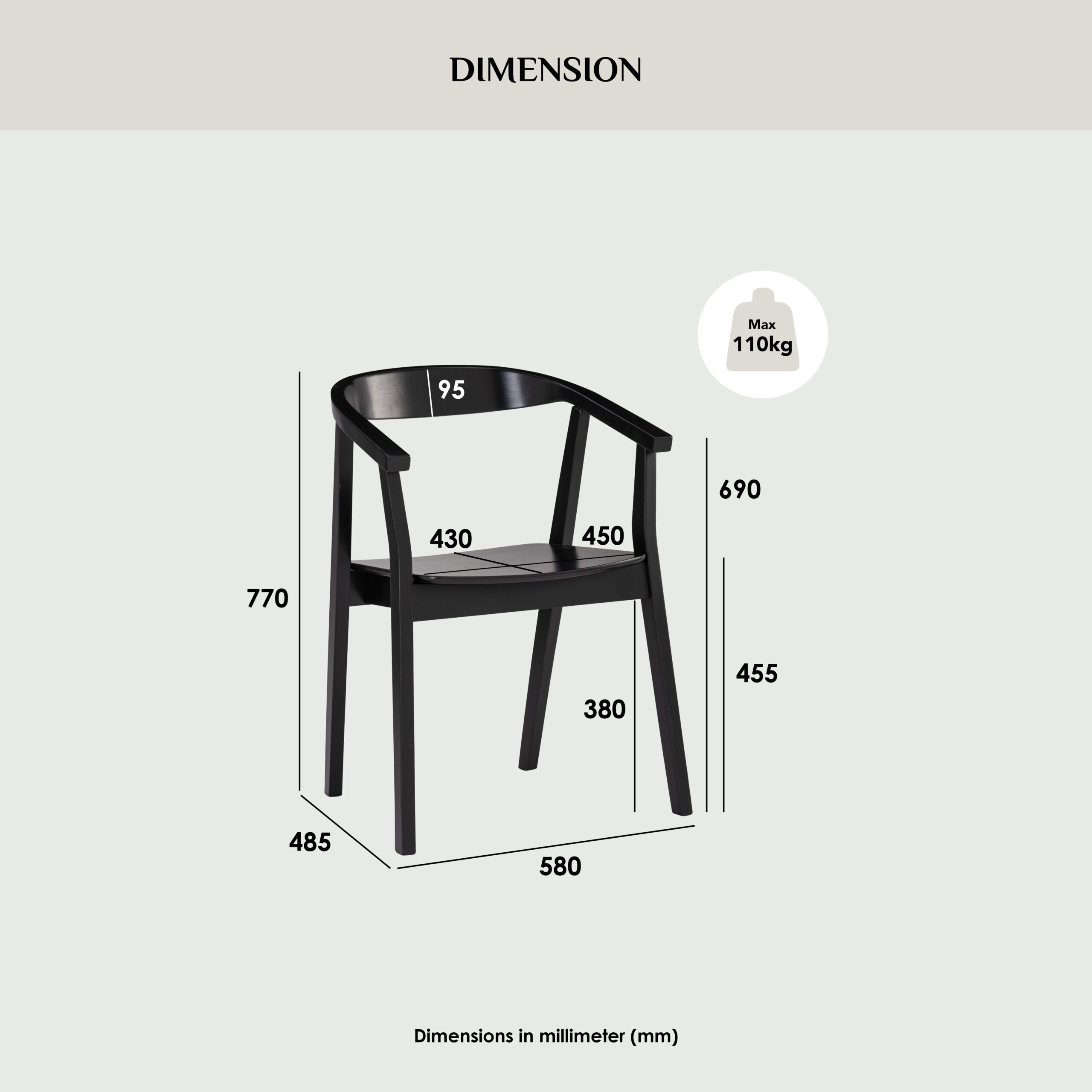 Dimension (mm): W580 D485 H770 SH455