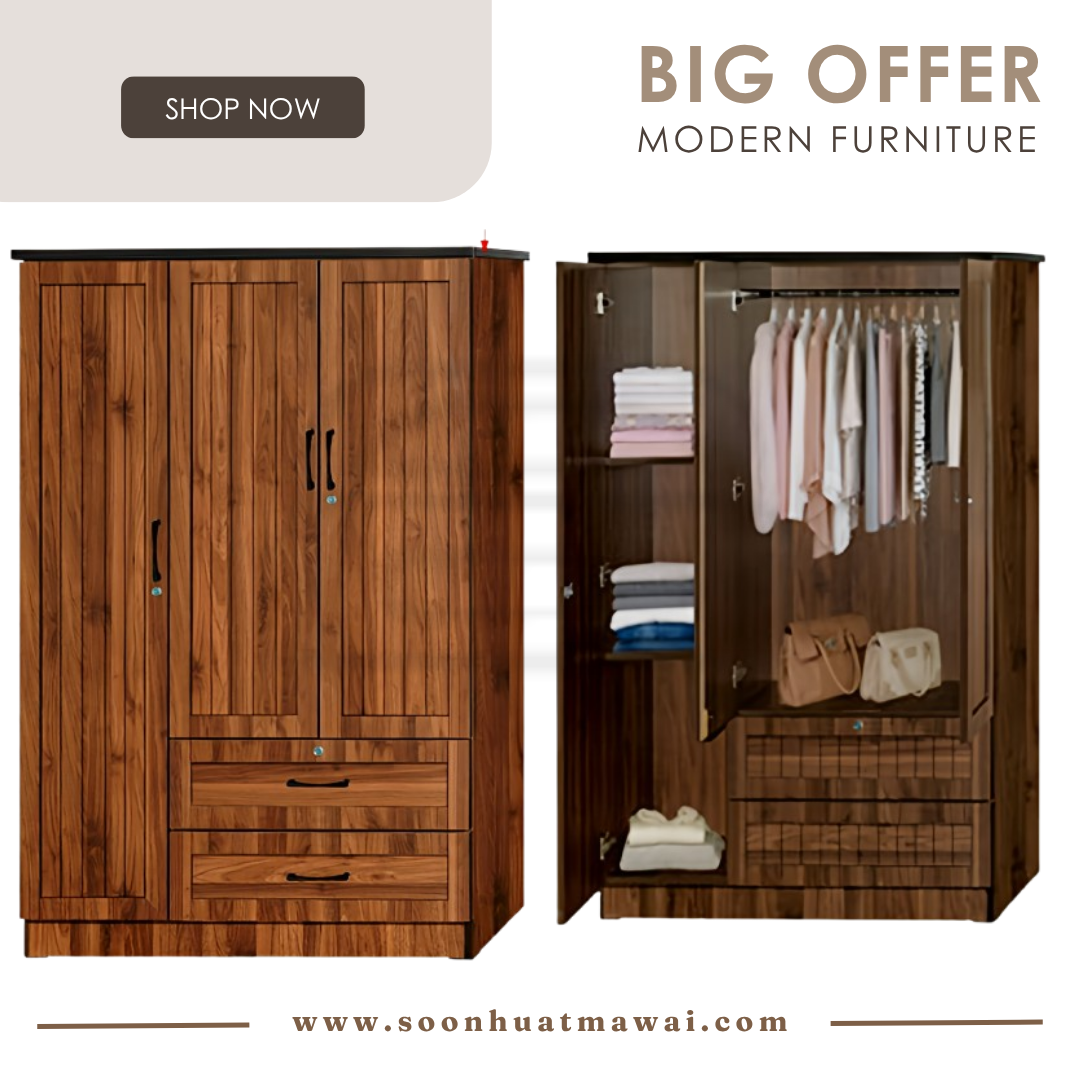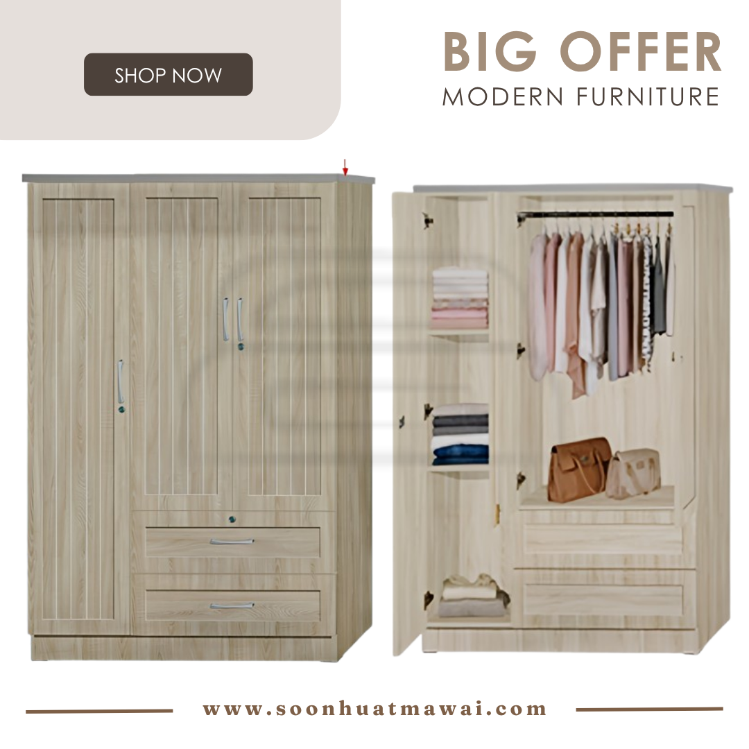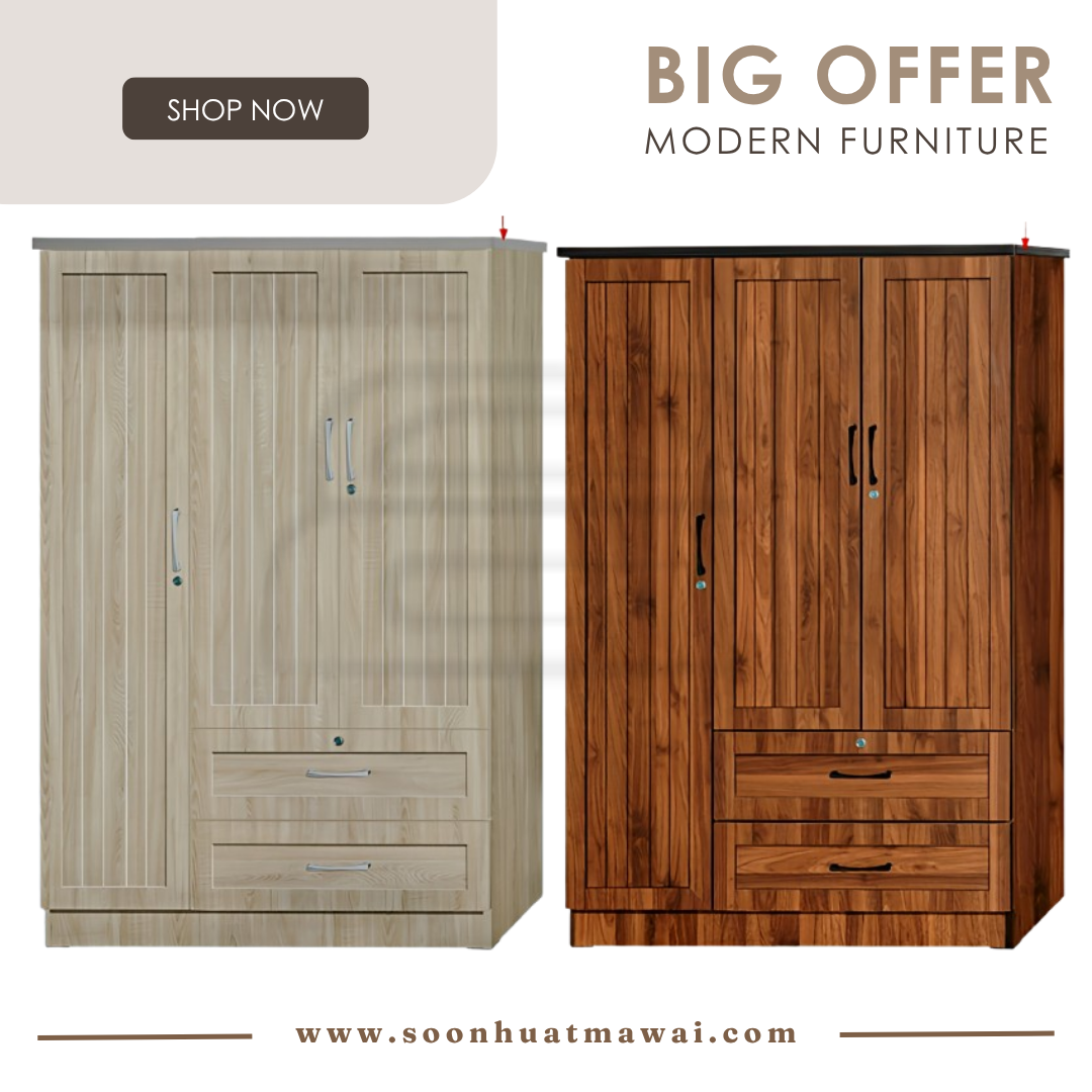 GY 2512 WARDROBE H182 W116 L45 WARDROBE 3 DOOR WITH DRAWER COLOUR: OAK GY 5512 WARDROBE H182 W116 L45 WARDROBE 3 DOOR WITH DRAWER COLOUR: WALNUT **DELIVERY NOT INCLUDE